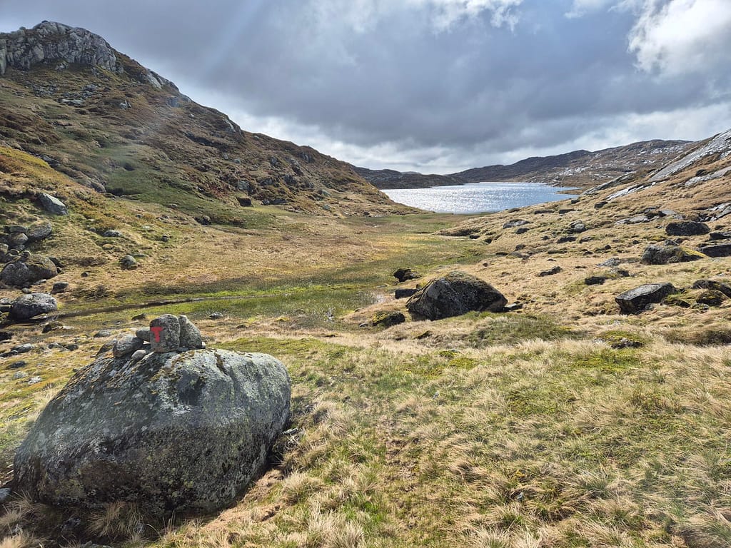 Noen ganger hender det at jeg bommer litt på ruta og må gå tilbake. I dag fulgte jeg en godt merket sti. Plutselig la jeg merke til at vardene var borte og sjekket gpsen. Jeg hadde da gått ca. 500m i feil retning. Der er fort gjort å ikke legge merke til dette når man følger gode stier. Så da blir det enten kreative rutevalg eller å gå tilbake til siste varde.