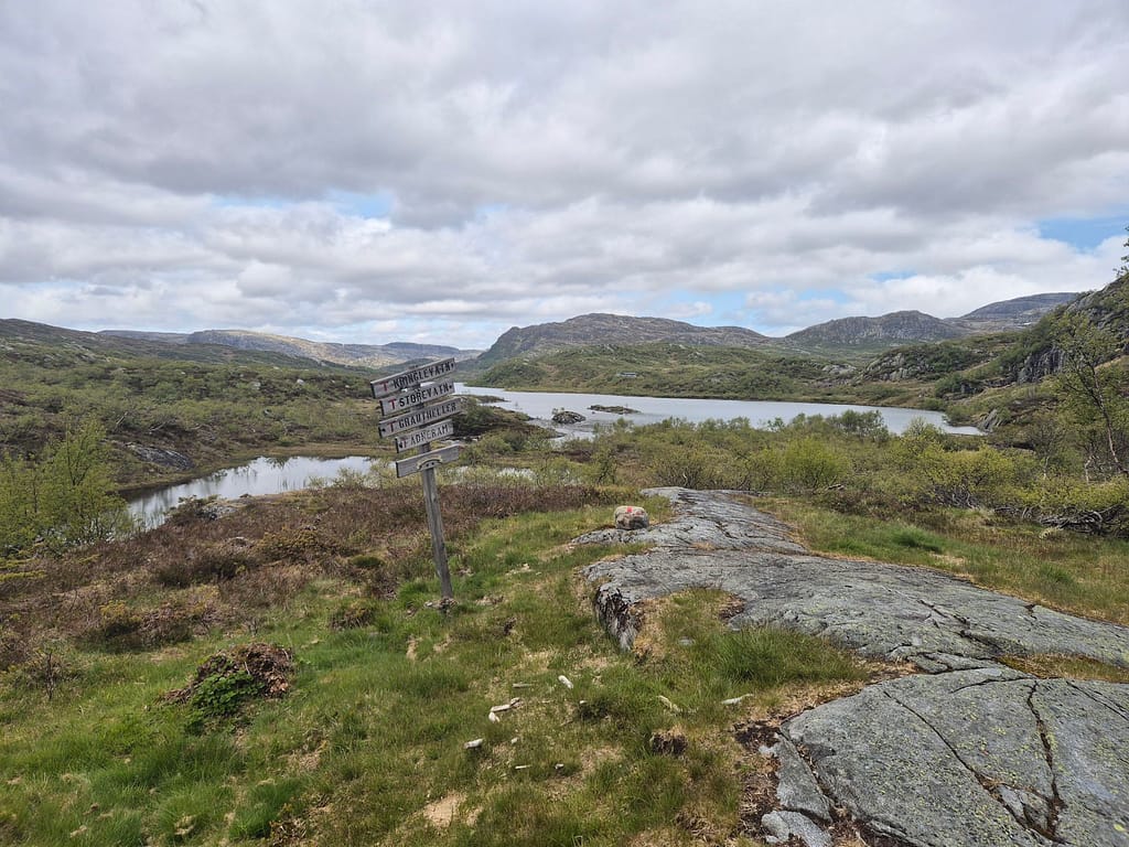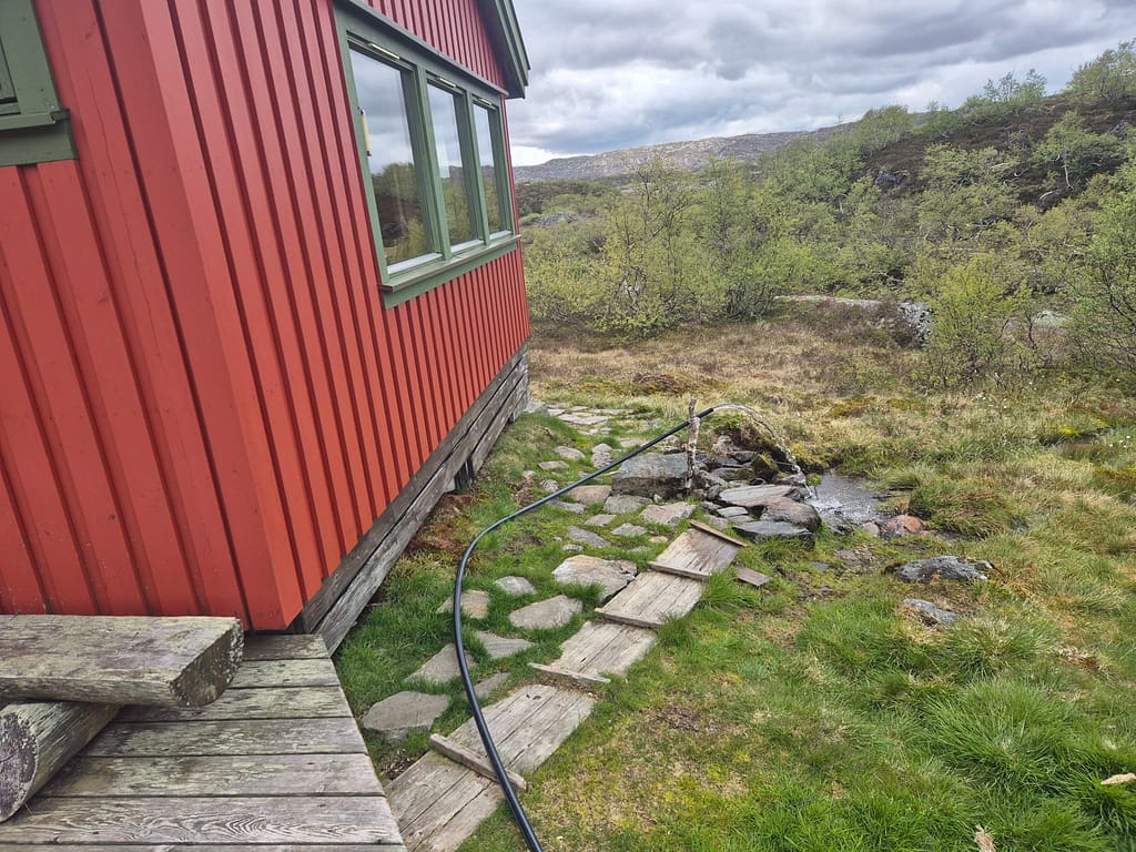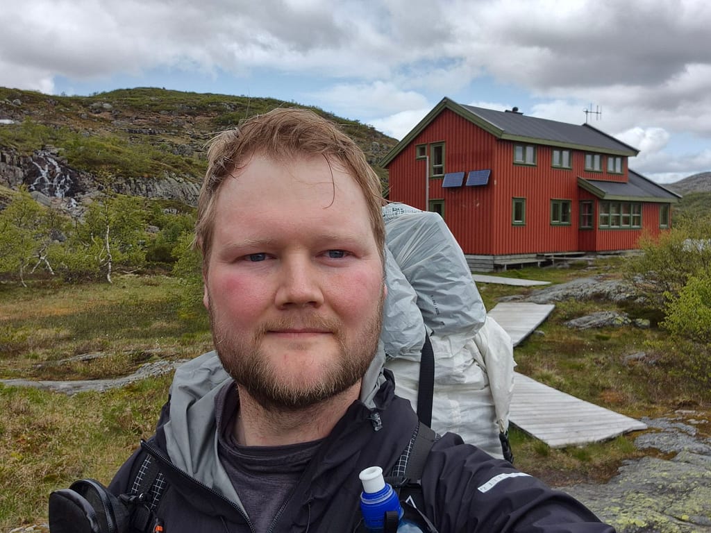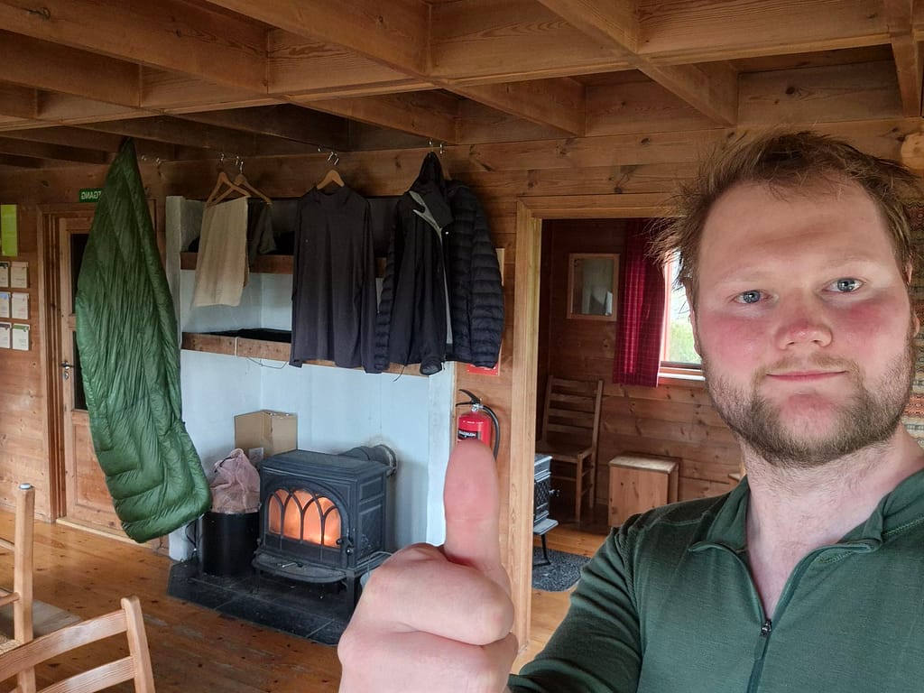 Etter en natt i teltet med ganske mye regn så var en del utstyr ganske fuktig. Jeg bestemte meg derfor for å booke plass på neste DNT hytte neste gang jeg skulle få dekning. Dette fikk jeg omtrent 10 minutter etter der jeg hadde campet for natten.