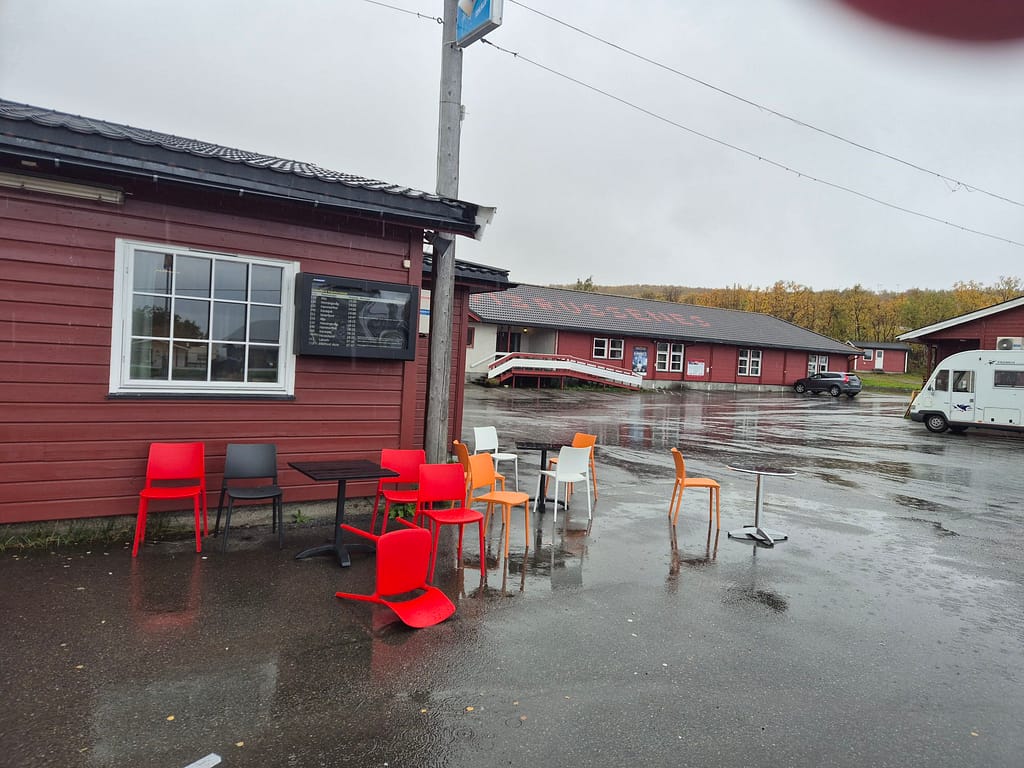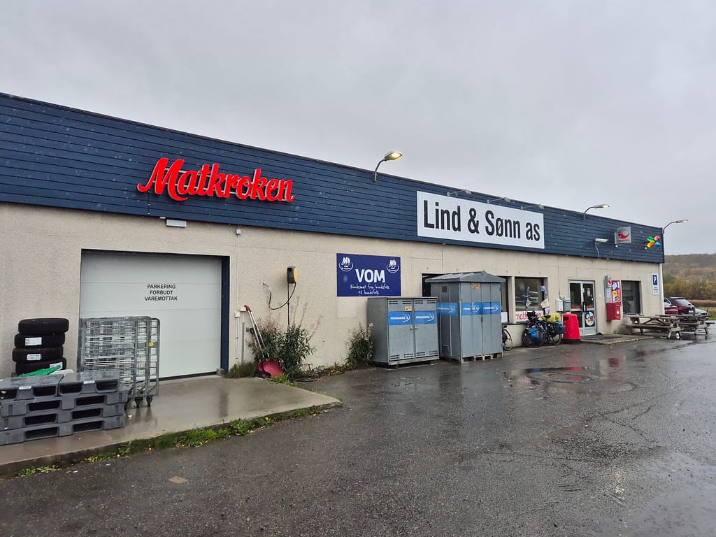 Jeg kom til E6 etterhvert og fulgte denne de siste kilometerne ned til Olderfjord. Her gikk jeg hentet ut pakken for siste etappen, kjøpt en pølse og litt snacks til kvelden. I pakken lå det et koselig brev fra Martine med bilder og oppmuntrende ord for den siste etappen. Det var veldig koselig og passet veldig godt i dag.