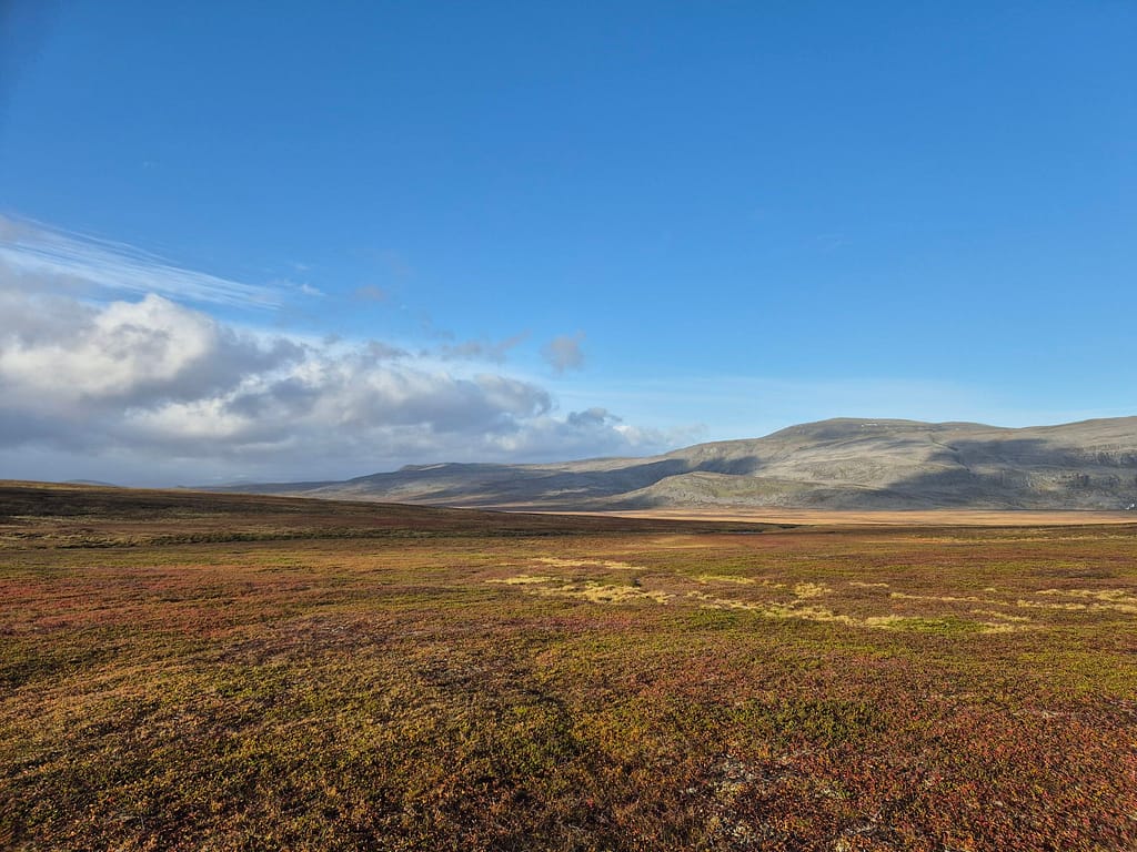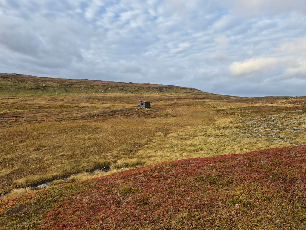 Omsider kom jeg til den åpne bua Várdáncokka. Dette er en veldig liten hytte med en køyeseng og et bord. Ingen ovn. Det var likevell fantastisk å få ly for vinden. Også i dag sleit jeg med øynene på slutten av dagen. Antar det er tørre øyne som gjør synet veldig tåkete. Tidligere har det gitt seg etter en natt søvn så satser på at det løser det også denne gangen.