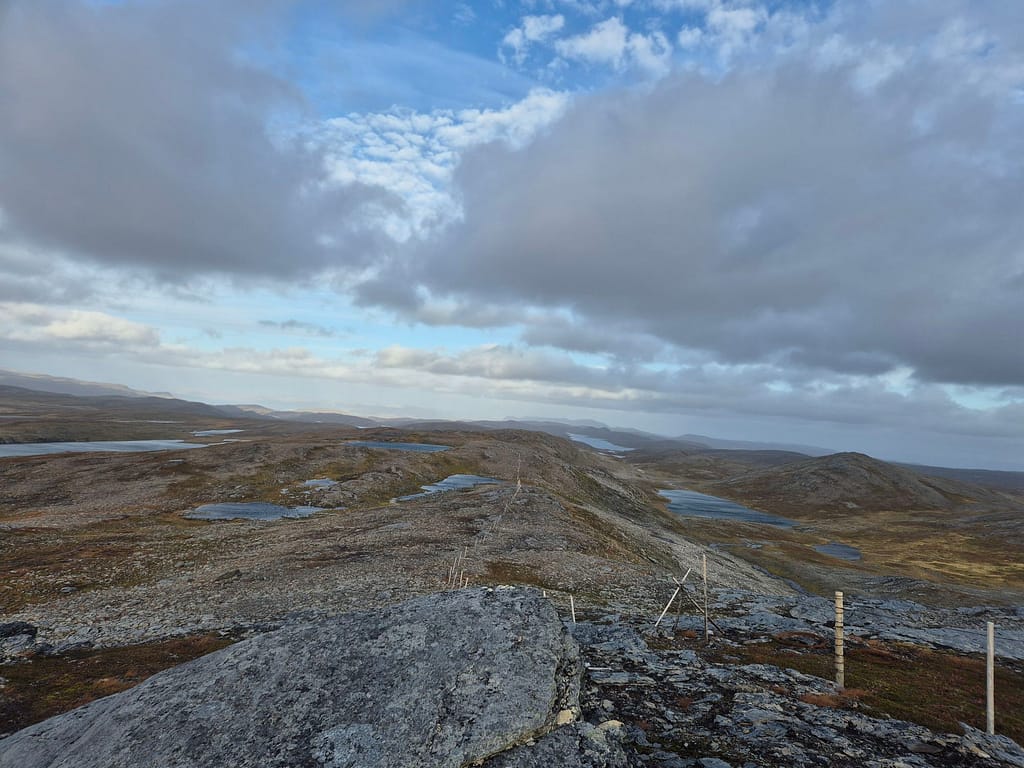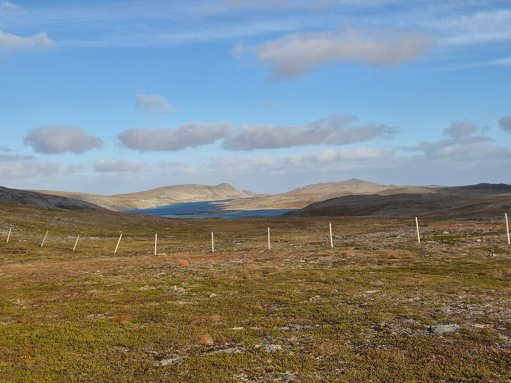 Løypa fulgte stort sett reingjerder. Det ble en god stigning opp til Gárdevárri. Herifra var vinden den kraftigste jeg har opplevd på turen. Det var skikkelig tungt å gå og kroppen måtte være i god vinkel mot vinden. Jeg var glad det var reingjerde langs fjellryggen i tilfelle vinden skulle øke enda mer.