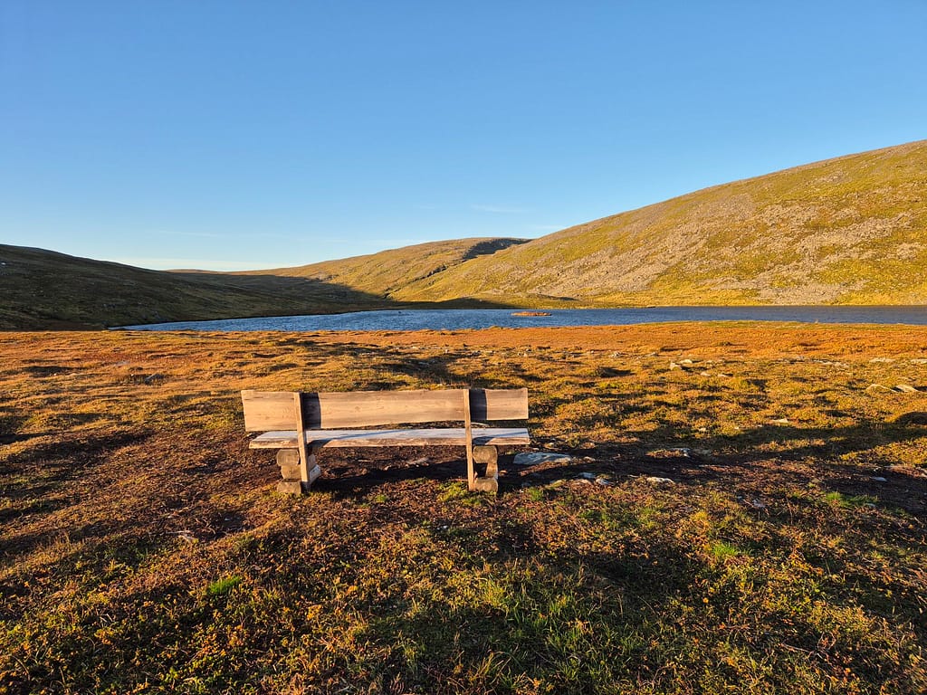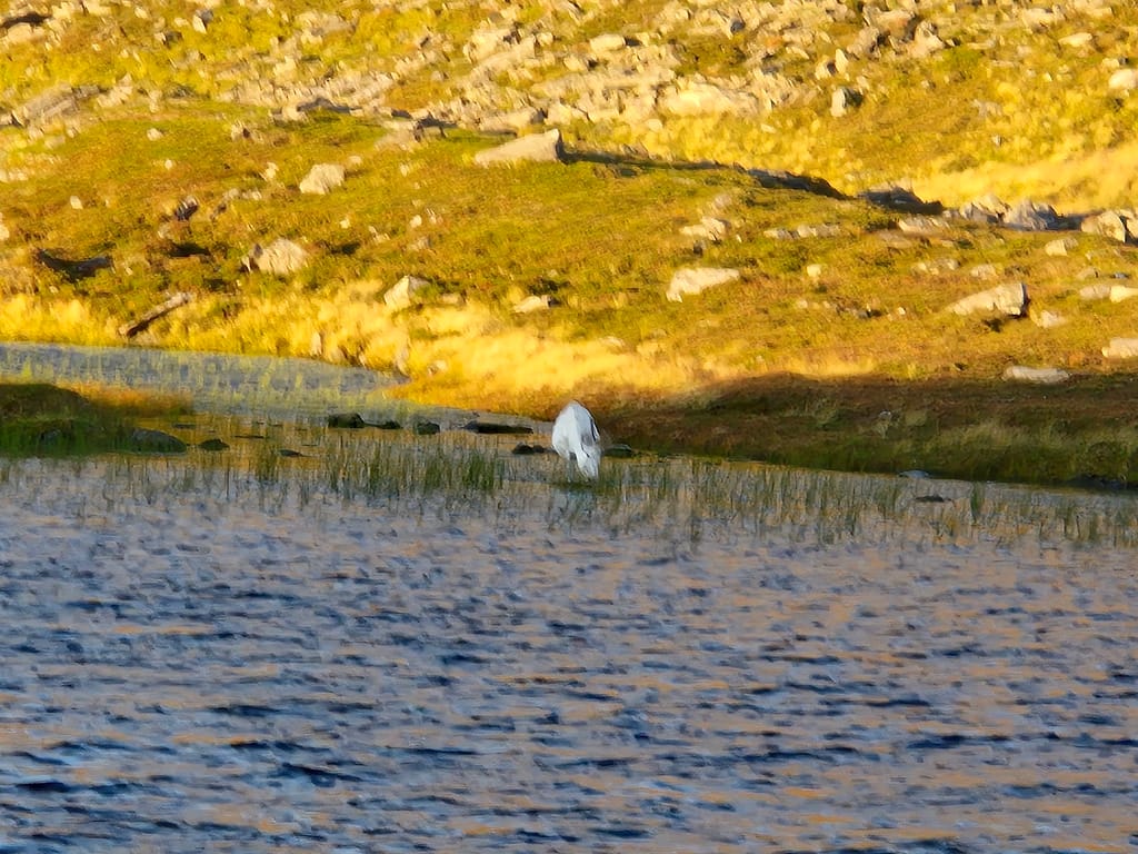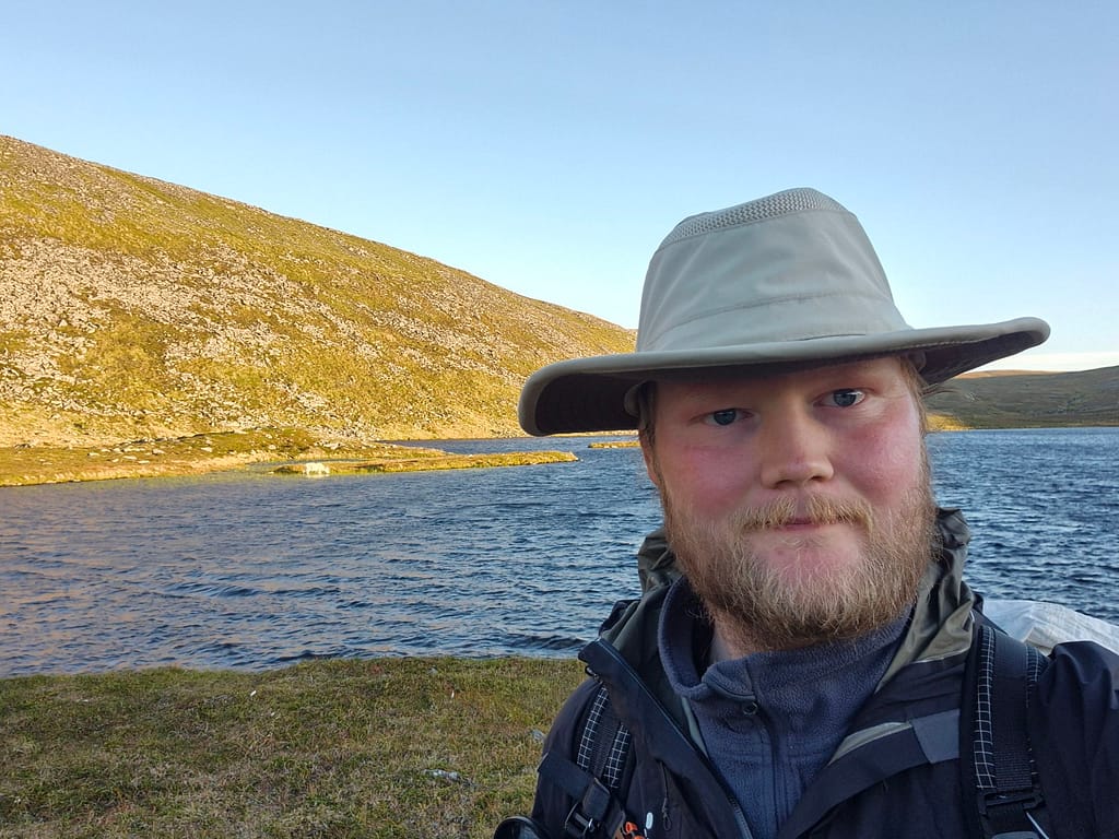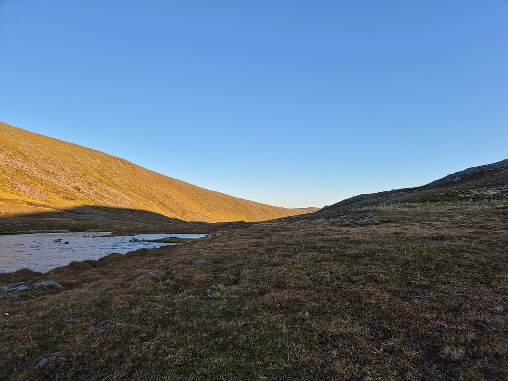 I dag våknet jeg til strålende sol og reinsdyr som beitet fredelig rundt vannet. Det ventet en kort siste etappe. Klokken halv åtte pakket jeg ned teltet for aller siste gang på turen – en spesiell og nesten uvirkelig følelse.