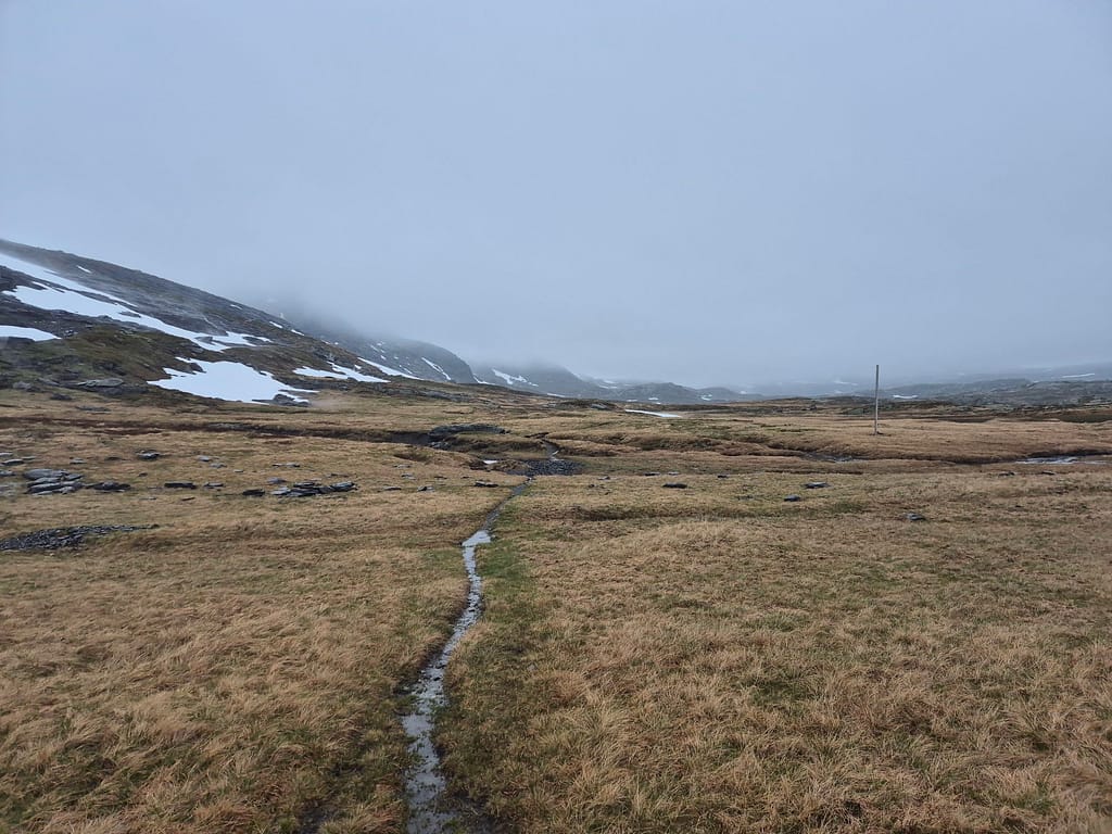 I dag var det skikkelig regnvær når jeg forlot Holmavatnhytta. Det skulle bli en relativt kort dagsetappe på ca. 17 km så jeg kasta på meg regntøyet og satte i gang.