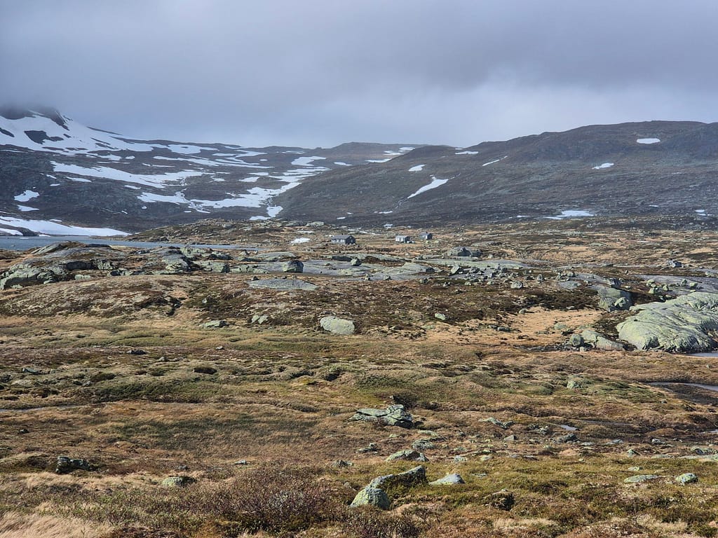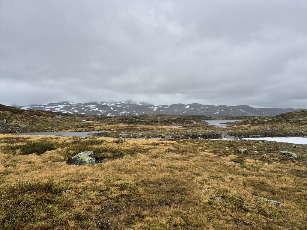 Etter frokost og dusj på Haukeliseter fjellstue så startet jeg turen over Hardangervidda. Det regnet en del i dag så marsjen ble i full skallbekledning. Det føles spesielt å ha kommet til det punktet hvor jeg kjenner meg igjen fra tidligere turer.