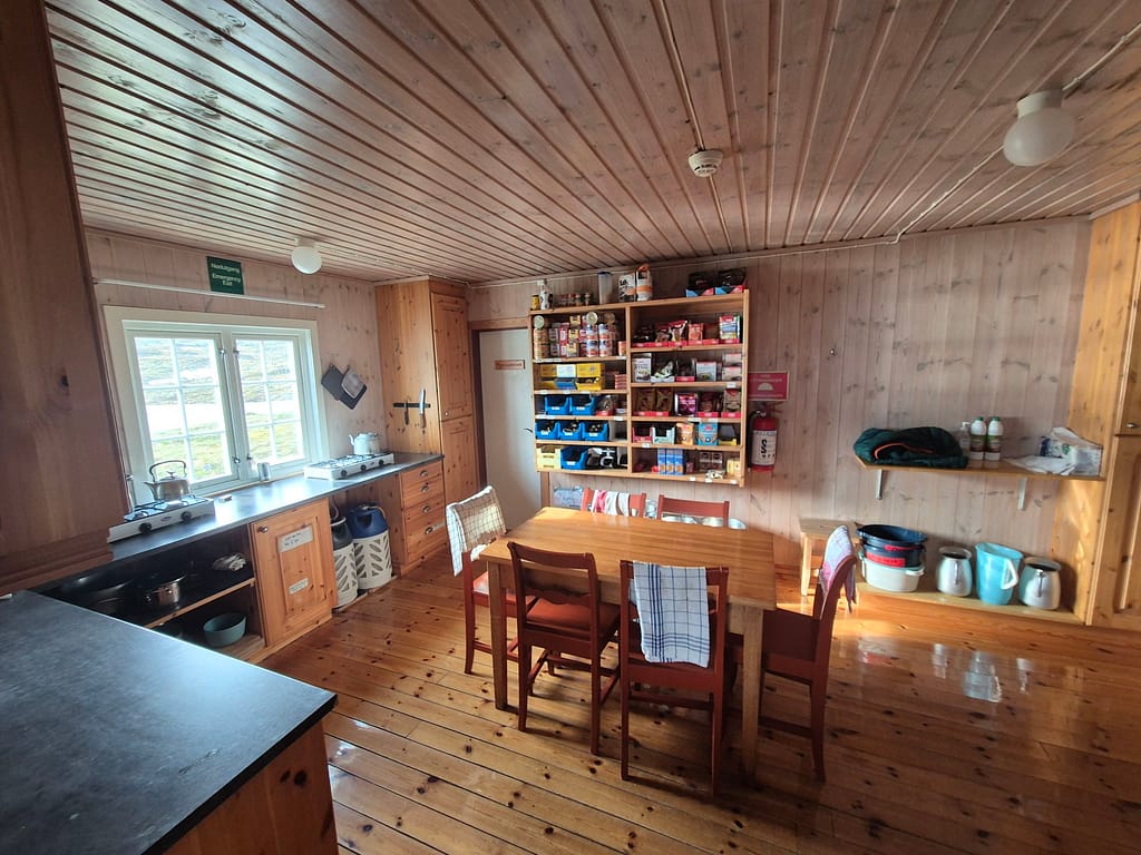 Planen var å sove i telt ettersom DNT hytta Hellevassbu er stengt grunnet reinkalving. Det var meldt litt vind i dag, 13 m/s. Det skulle vise seg å bli betraktelig mer luftig. Jeg måtte stålsette meg mot vinden med stavene og føttene plantet i bakken. Til tider med kroppen i god vinkel mot vinden for å ikke bli blåst overende. Noen ganger måtte jeg bare stå og vente til de verste vindkastene ga seg før jeg kunne gå videre. Jeg innså at telt ville bli et dårlig valg for natten. Det ble derfor en lun og fin natt på hytta som nødbu.