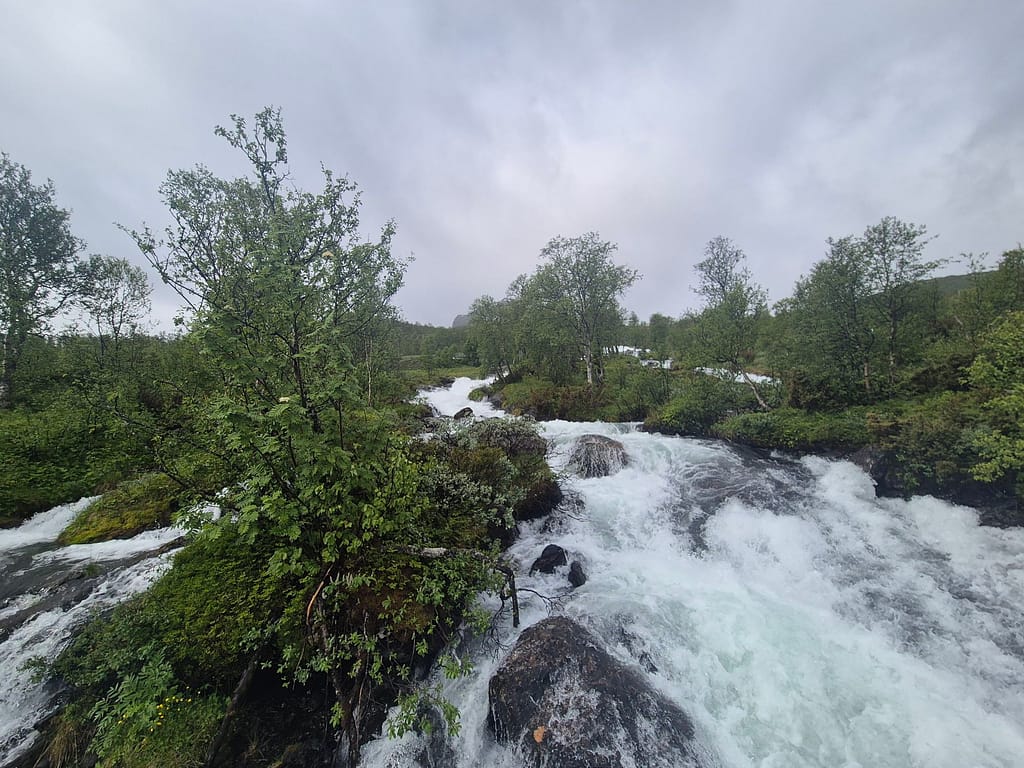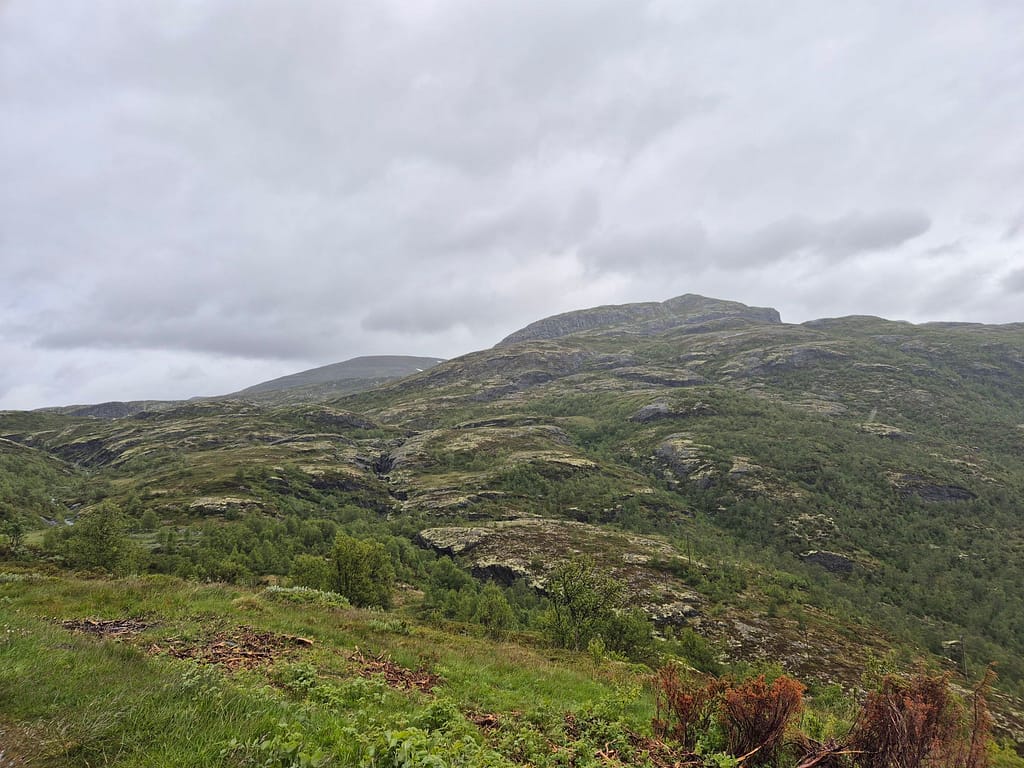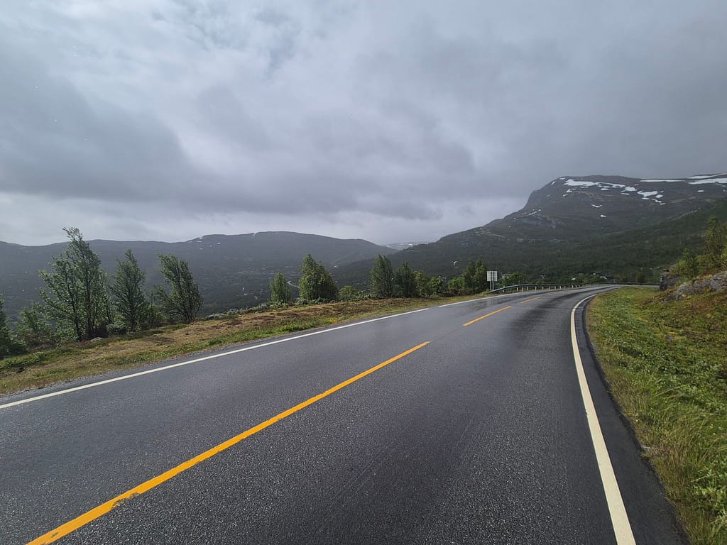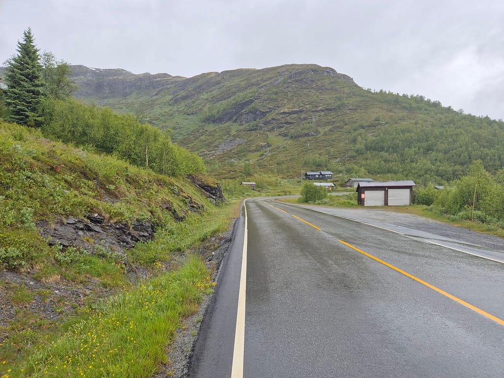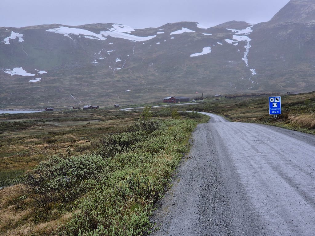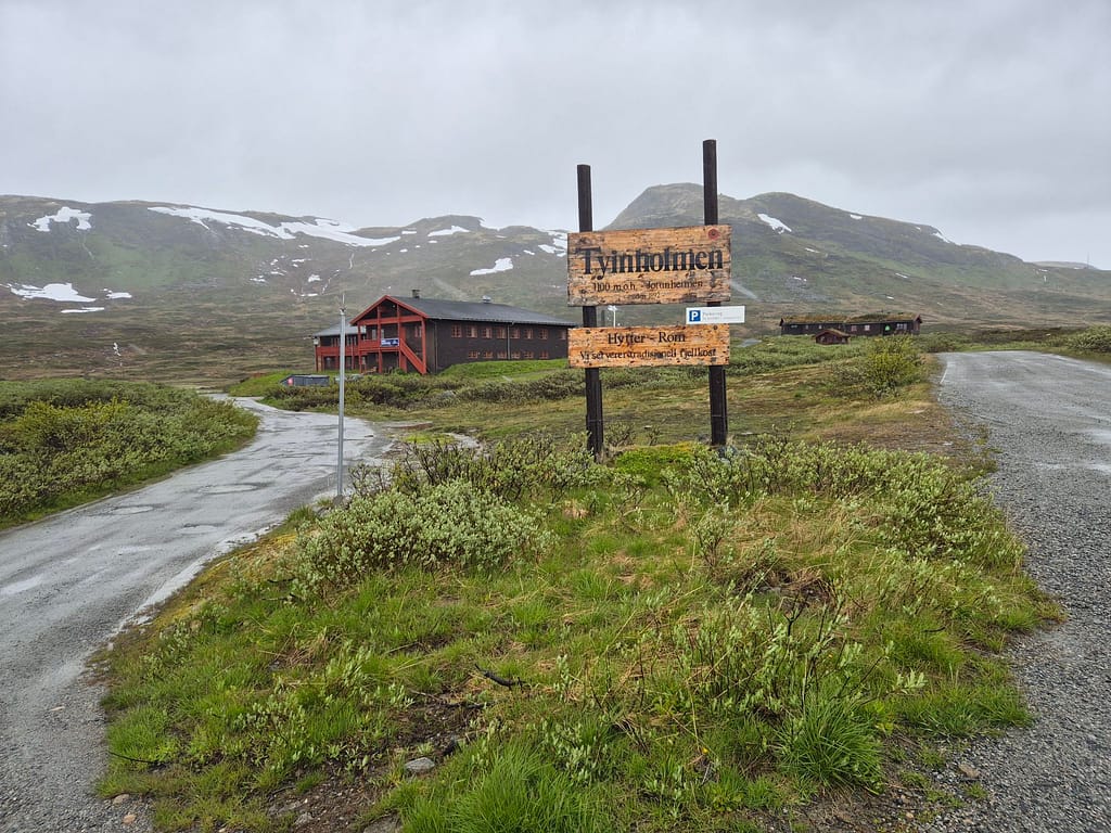 Etter en hviledag i kjærkomment selskap så var det tungt å starte opp igjen. Himlen hadde åpnet alle sluser og regnet pøste ned. Jeg booket rom på Tyinholmen høyfjellsstuer og satte i vei.