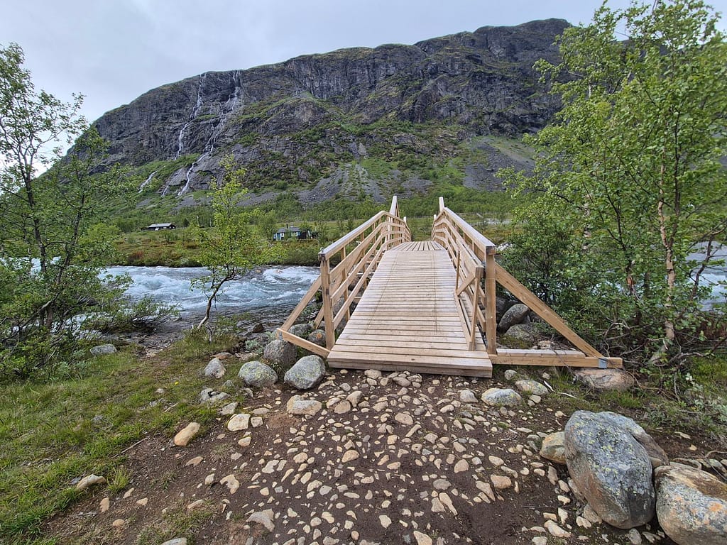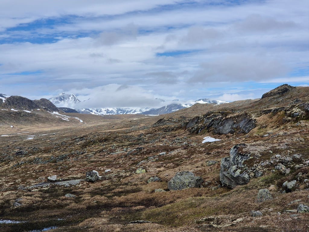 Frem til Fondsbu fulgte jeg grusvei før turstien begynte. Det var tidvis ganske vått, men ellers en god sti. Det er spennende å komme inn i nye fjellområder. Jotunheimen bærer preg av å ha de høyeste fjellene i Norge og det vises med mange snødekte topper.
