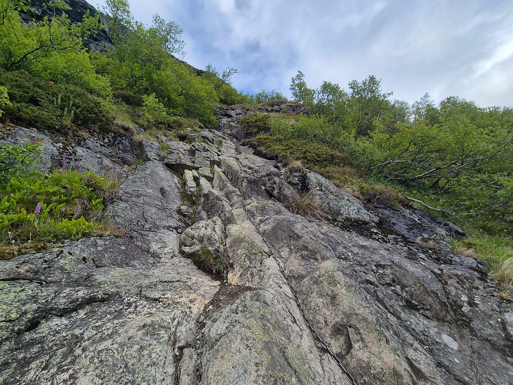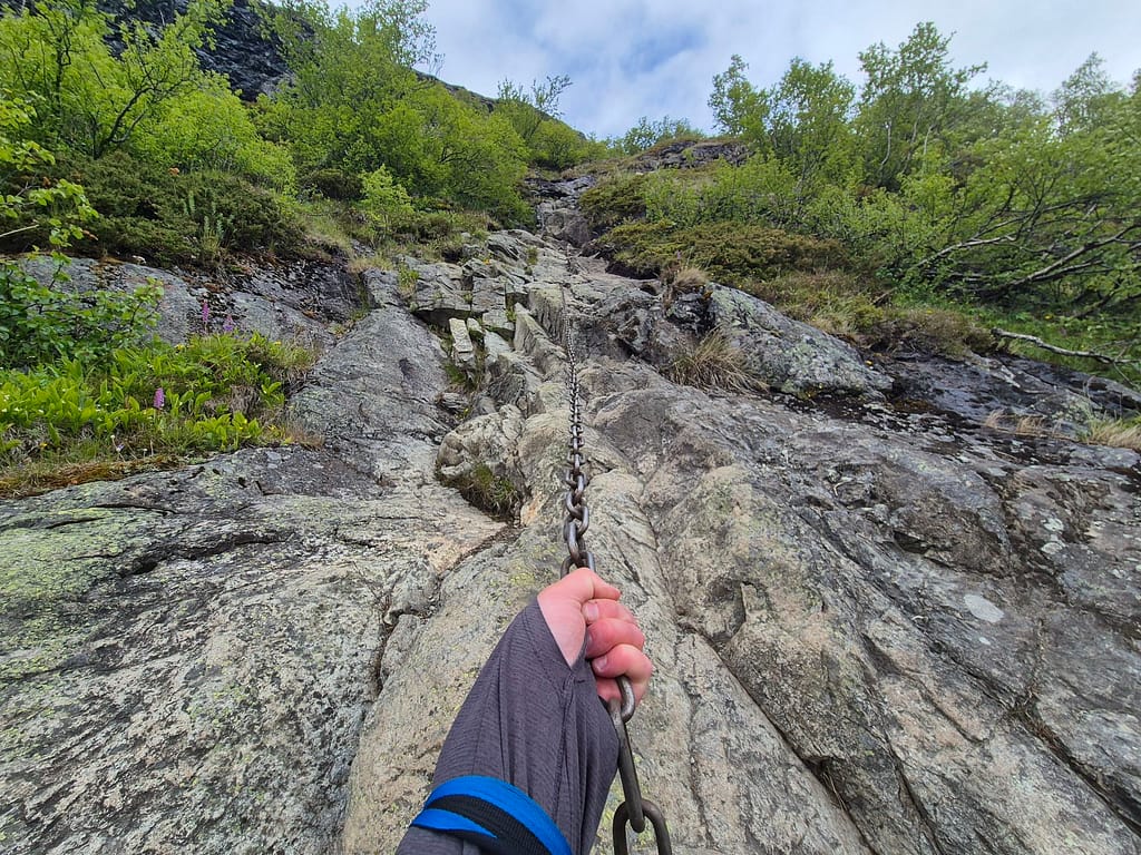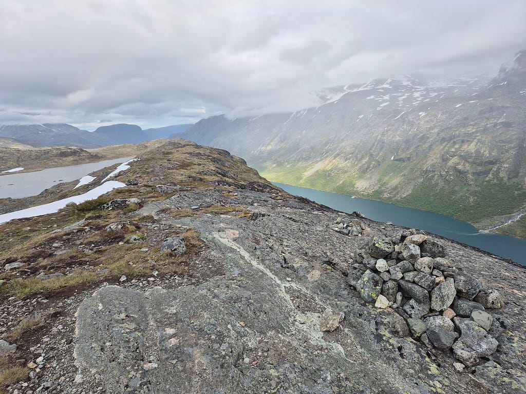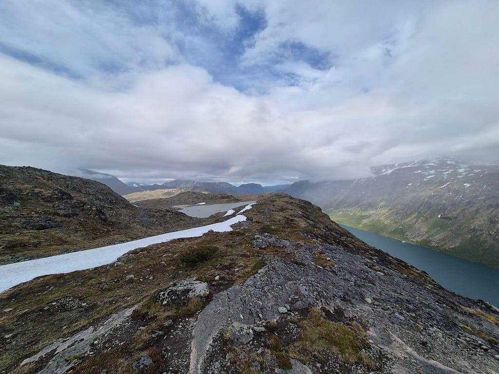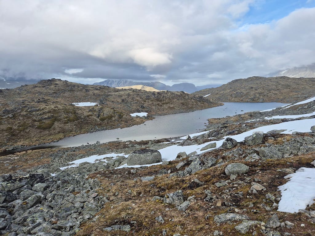 Noen kilometer etter Gjendebu så begynte stigningen opp på fjellet. Det var veldig bratt og flere områder var det lagt ut kjettinger for å kunne klatre oppover. På toppen slo jeg opp teltet ved det første lille vannet jeg kom til.