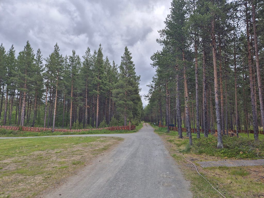 Etter en natt på campingen fikk jeg tatt en dusj før jeg gikk videre. Det gikk en skogsvei de første kilometerne fra campingen før jeg måtte følge asfalten igjen.
