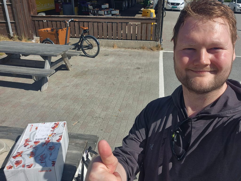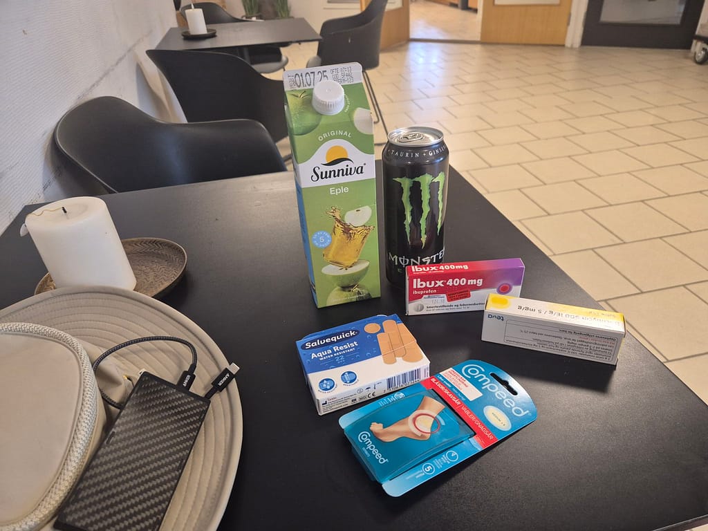 På Joker Tingvatn ble det en etterlengtet pause med fåfyll av fotpleieprodukter, en energidrikk og en eplejuice. Var heldig at de hadde Bacimycin (sårsalve). Det virker som at flere av de lokale butikkene har litt ekstra apptekvarer siden nærmeste apotek er langt unna.