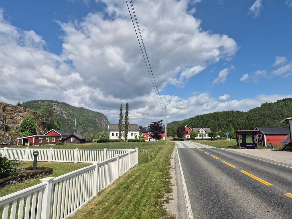 I dag ble jeg ferdig med Lyngdal kommune og gikk inn i Hægebostad kommune. Agder så langt har bydd på veldig vakkert landskap med bratte små fjell, elver og ellers et frodig landskap med åkre, skoger og dyreliv.
