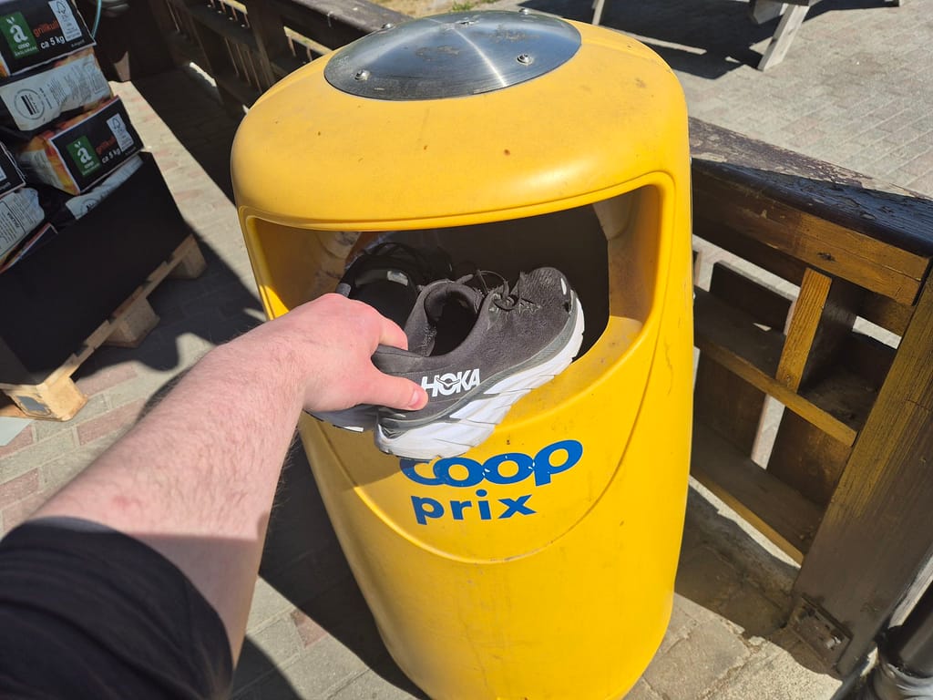 Etterhvert kom jeg endelig til Coop Prix Eiken. Her fikk jeg hentet pakken med turskoene og joggeskoene gikk rett i søppla. Det merkes at det hjelper med nye sko, men det kan fort ta et par uker får sårene gror skikkelig.