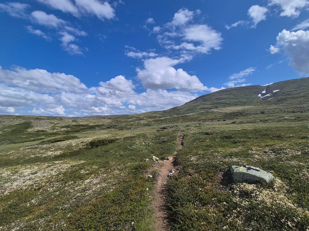 Denne etappen over Forollhogna vil bli utfordrende ettersom det vil bli mye vandring uten sti. Ruta et tegnet litt tilfeldig så det vil bli mye vurderinger av veivalg underveis. Er spent og litt nervøs for hvor tung etappen kommer til å bli i stekvarmen.