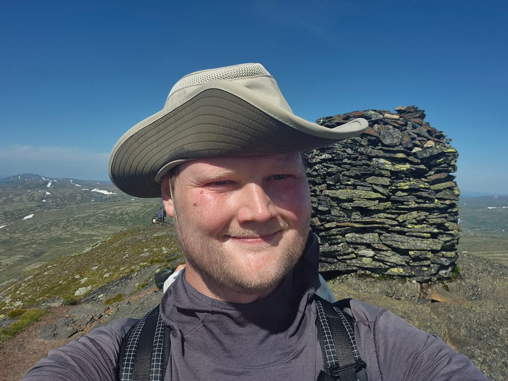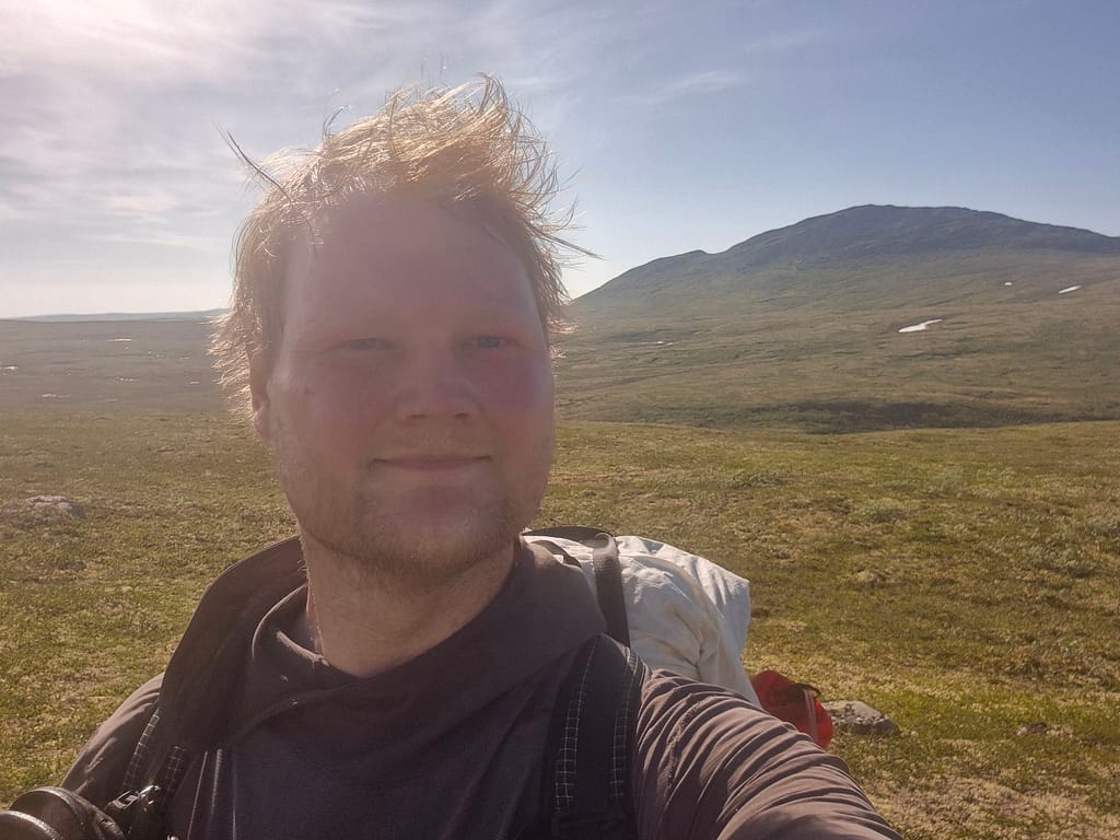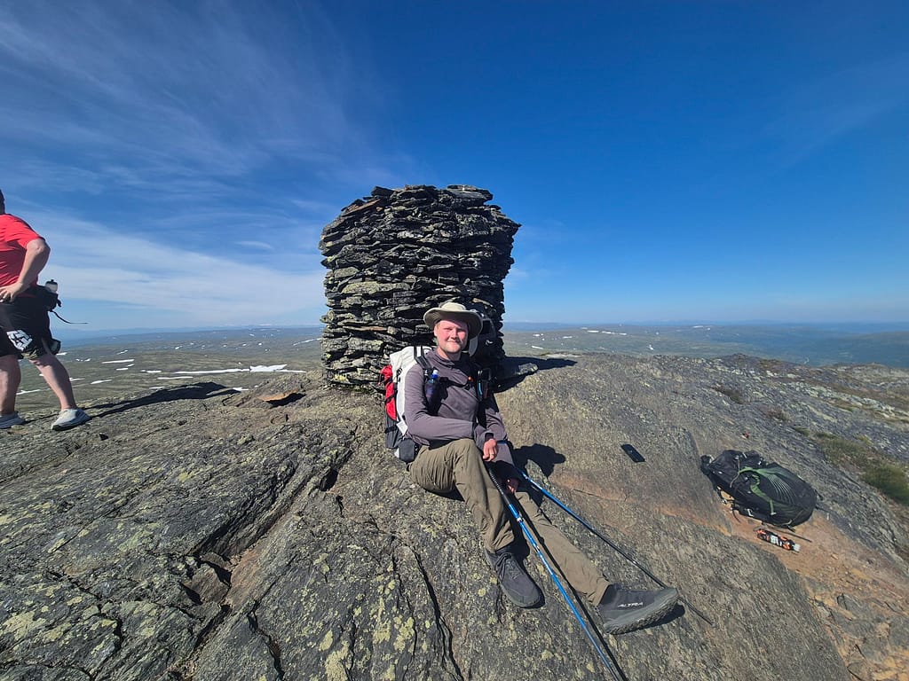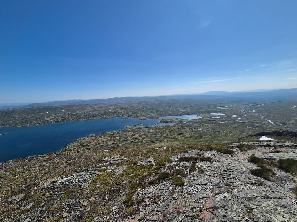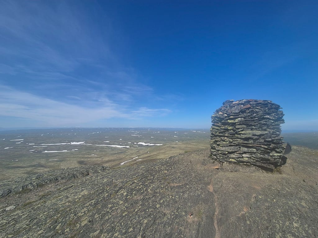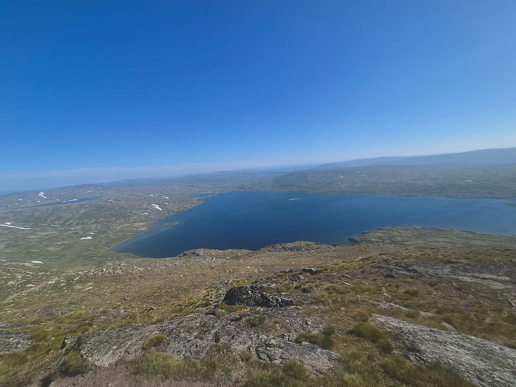 Etter å ha gransket den planlagte ruta endte jeg opp på et punkt å gå bort fra den og heller gå mer rett mot fjellet Forollhogna. Det var lite stier og mye kuppert terreng uansett hvor jeg gikk. Da jeg kom frem til fjellet bestemte jeg meg for å ta turen til toppen når jeg først var der. Det var en del vind men ellers et fantastisk solvær og en enorm utsikt. Selve stigningen var ganske grei.