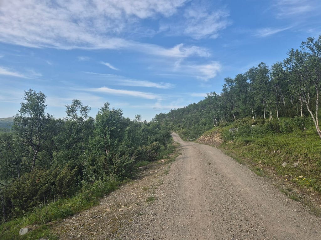 Fra Forollhogna fulgte jeg stien et stykke sørøst før jeg skrudde over til en fjellvei mer østover. Denne ble fulgt litt før jeg igjen gikk uten sti et stykke til jeg kom til Fjellsjøen. Her er det muligens en liten åpen bu. Det var folk der så jeg valgte å gå videre ettersom jeg ikke er helt sikker om bua er åpen eller ikke.