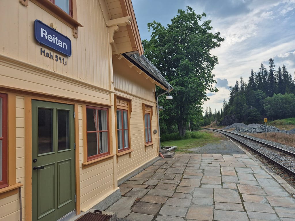 Jeg stoppet etter en stund på Reitan stasjon hvor jeg lånte toalett og fylte vannflaskene. Det tordnet og regnet en del en time så jeg hvilte på stasjonen til det roet seg. Det var behagelig og svalt inne på stasjonsbygningen. Jeg gikk litt videre og slo opp teltet ved Målåsetret parkeringsplass. Her kan man betale for å parkere, men det sto ingenting om telt. Jeg betalte derfor som om jeg var en bil for en natt. Dagens etappe ble på nærmere 40 km. Jeg får derfor en roligere etappe til Kjølihytta i morgen hvor jeg har booket seng.