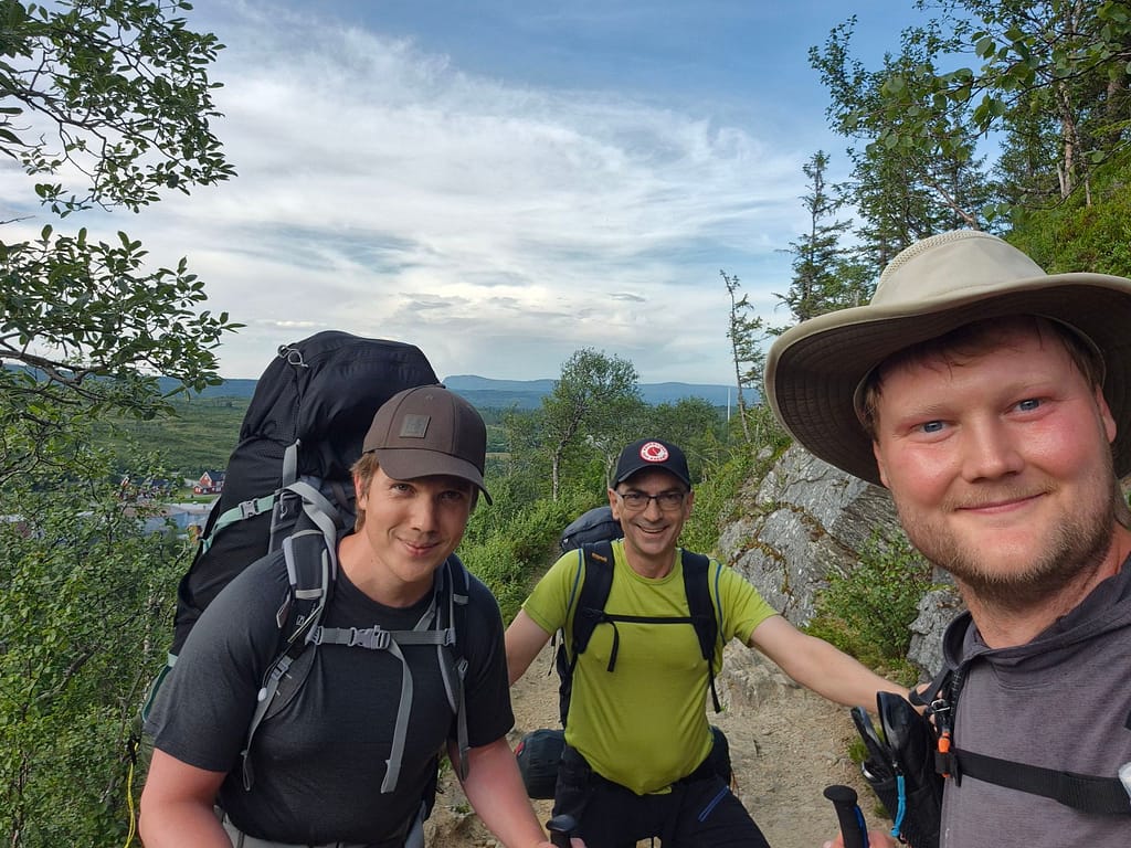 Det var ett fint bilde av trekløveret på tur sammen, det blir nok noen trivelige dager ,spesielt for deg Alex , som har greid å gå så langt alene, kos dere og legg utrolige minner I livsboka, god tur videre, klem på seks kinna fra bestemor