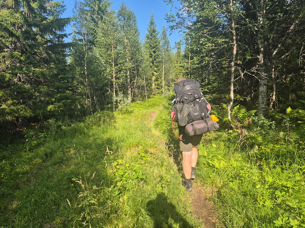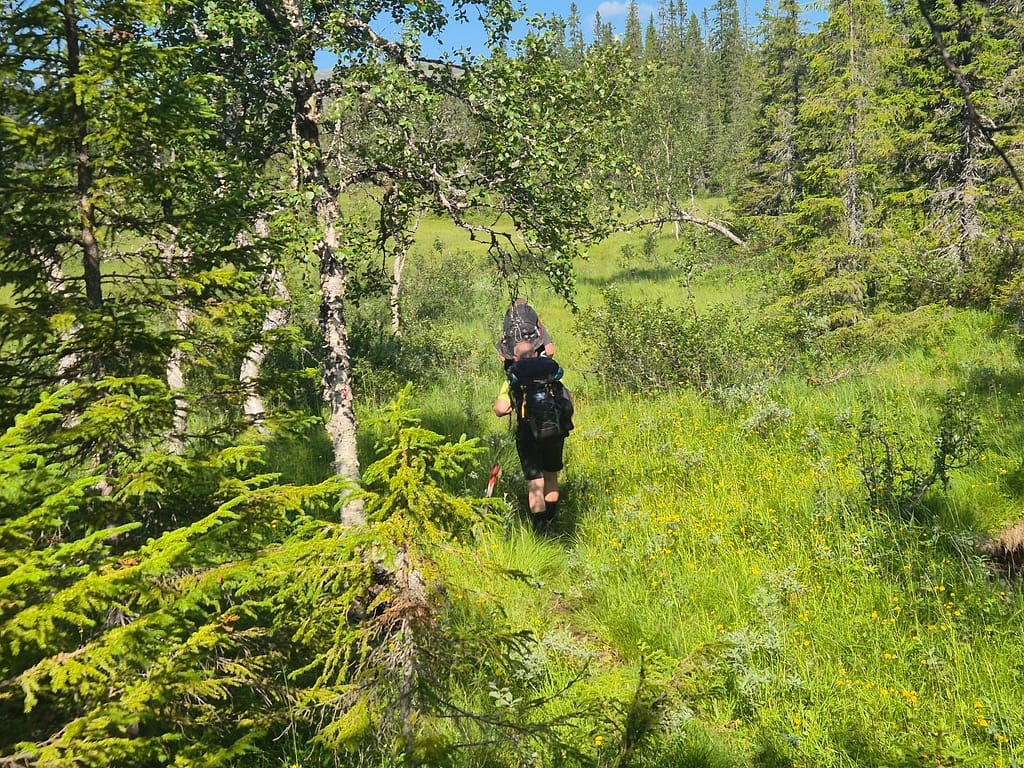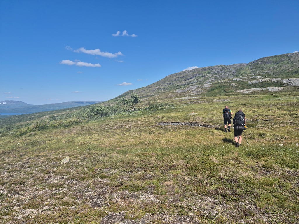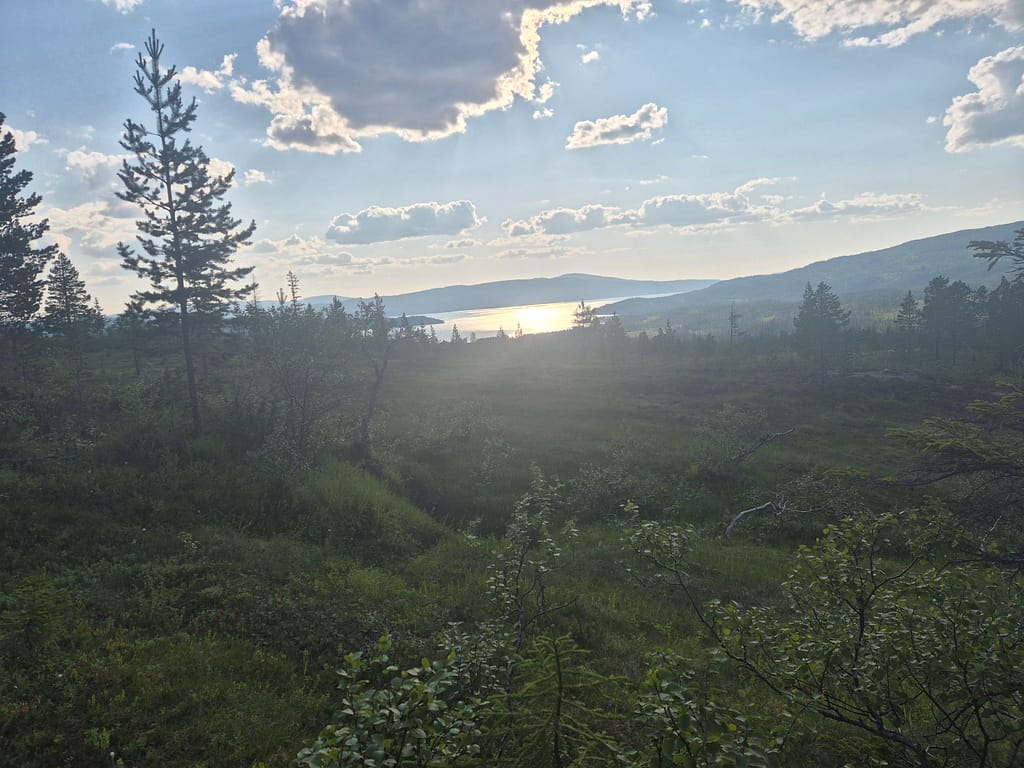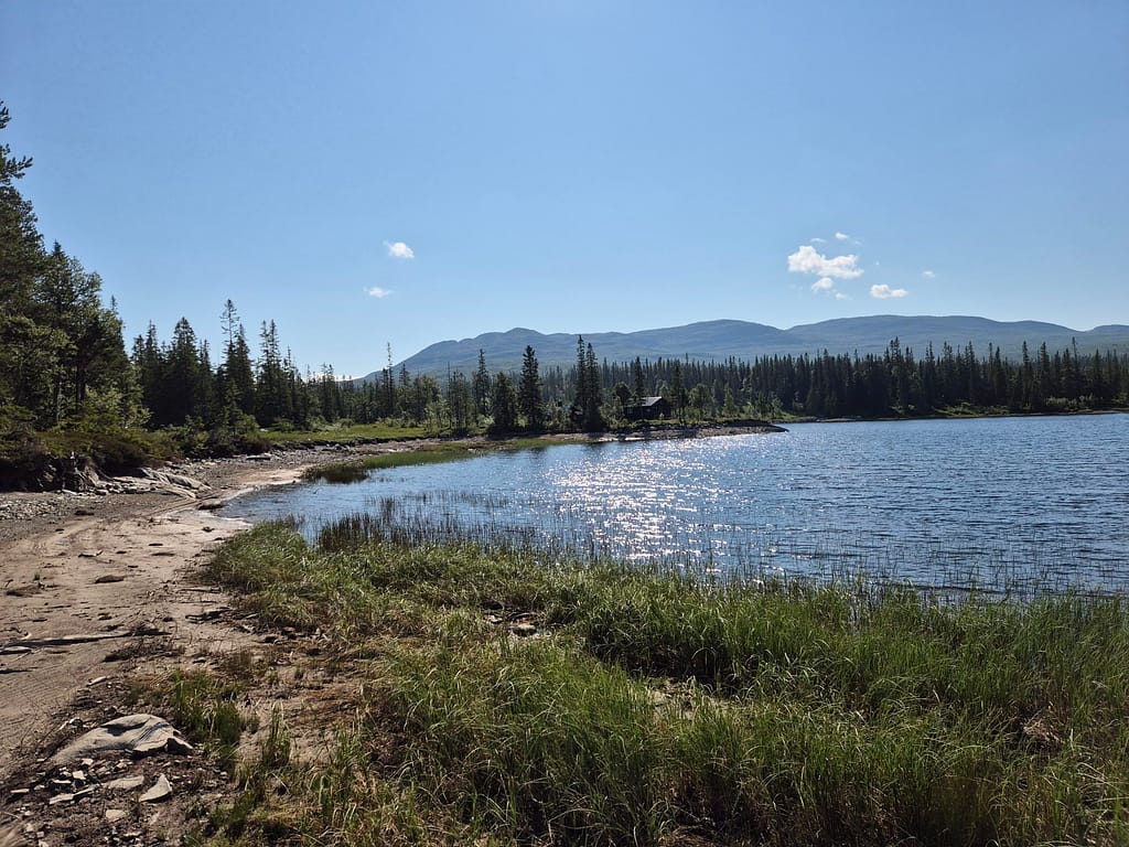 Videre ble det en del myr og skog før vi kom opp på fjellet igjen. Vi valgte å gå litt ekstra for en fin teltplass og endte opp på et lite nes ved Sulsjøan. Utrolig flott plass. Vi var fremme i 21 tiden og rakk akkurat et kveldsbad før sola gikk ned. Det er meldt dårligere vær med en del regn fra fredagen så utnytter enhver mulighet til å bade i de idylliske fjellvannene.