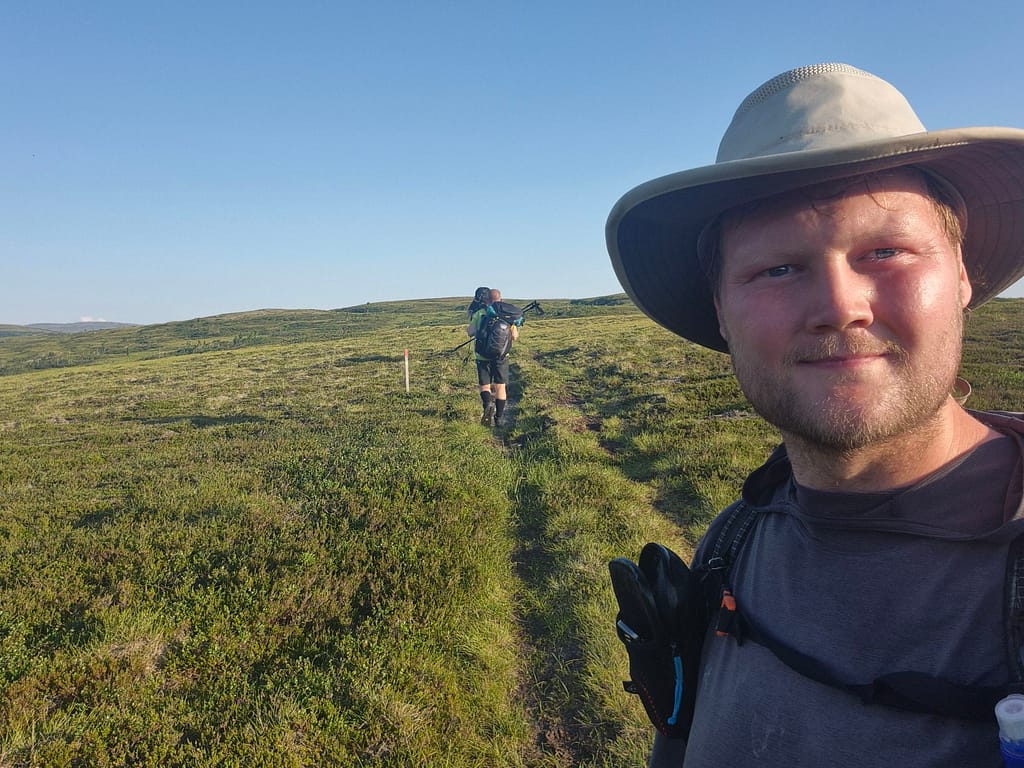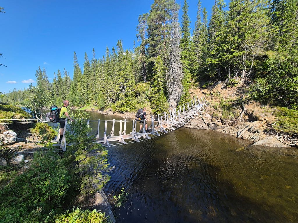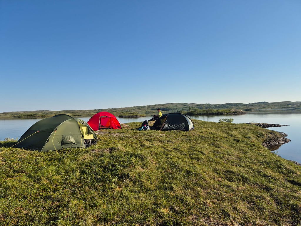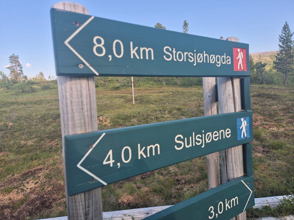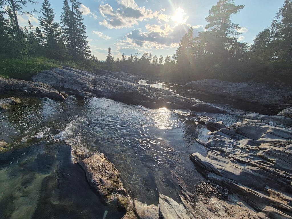 Videre ble det en del myr og skog før vi kom opp på fjellet igjen. Vi valgte å gå litt ekstra for en fin teltplass og endte opp på et lite nes ved Sulsjøan. Utrolig flott plass. Vi var fremme i 21 tiden og rakk akkurat et kveldsbad før sola gikk ned. Det er meldt dårligere vær med en del regn fra fredagen så utnytter enhver mulighet til å bade i de idylliske fjellvannene.