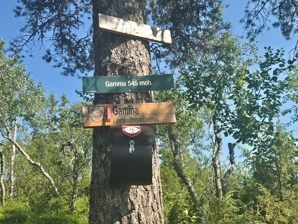Etterhvert kom vi til en jordgamme som bare kalles for Gamma. Her tok vi en rask pause på en benk og innså at det var slutt på kroppene. Resten av marsjen var i myr og skog før vi kom til grusveien ver Vera.