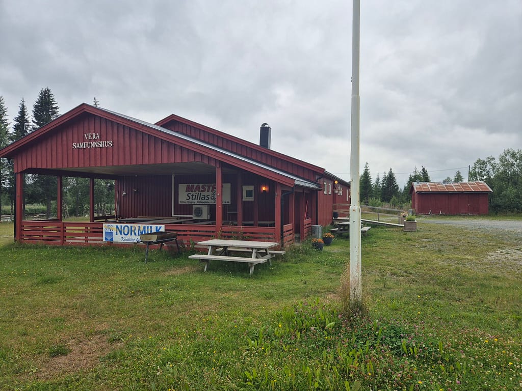 Etter en rolig morgen pakket vi sammen og gikk opp til Vera samfunnshus. Her var det benker og utedo og fint å vente på taxien. Det skulle være en solid elv her, men den var så uttørket at vannet var helt stillestående. Taxien kom ca kl. 10 og det ble tatt farvell med Anton og Axel. Jeg er utrolig takknemlig for at de ville dele noen dager av turen med meg. Det har vært utrolig hyggelig. Takk for turen.
