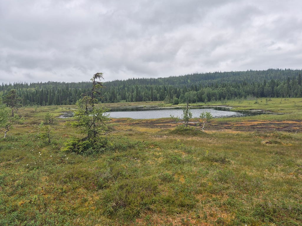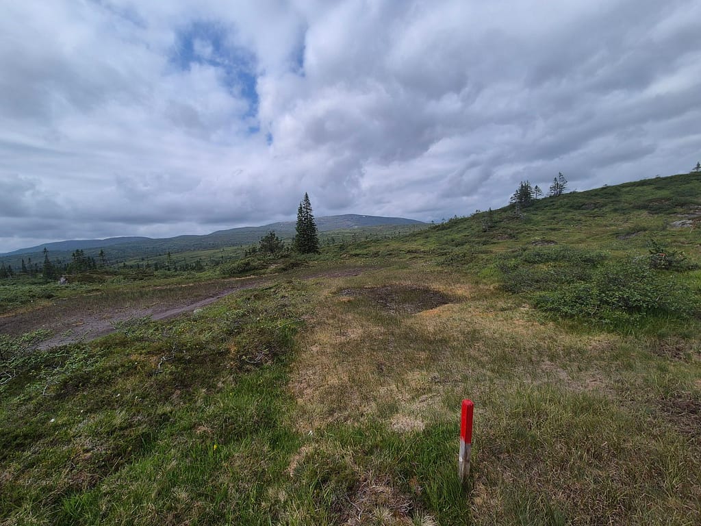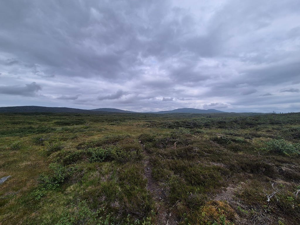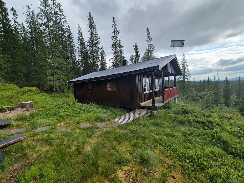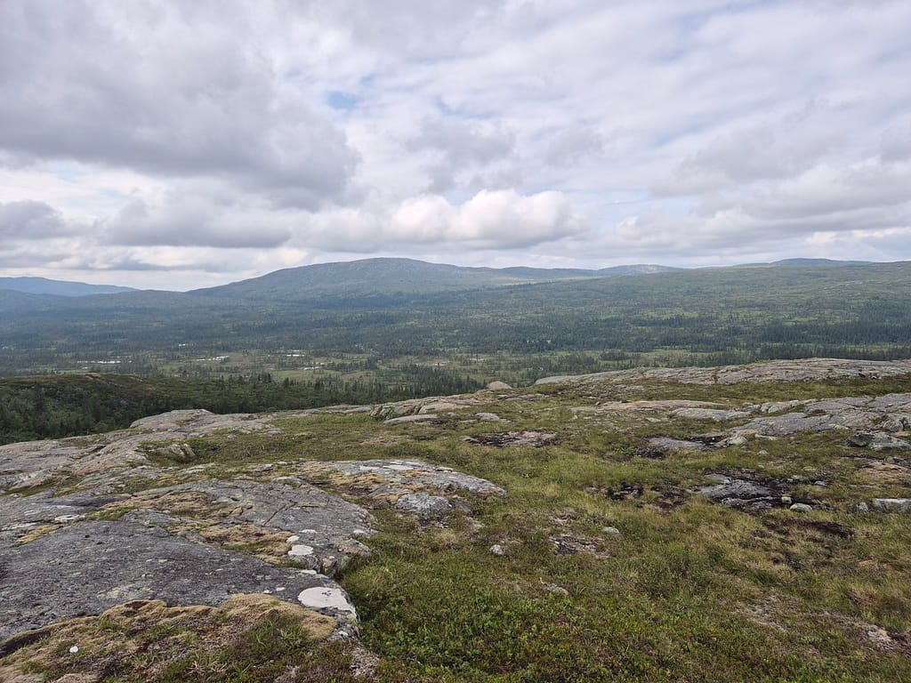 Det første timene var det litt vått i myra. Etterhvert kom det litt klopper over kortere områder. Det meste av turen var skog og myr til jeg nærmet meg DNT hytta Skjæketdalshytta. På toppen her var det litt snaufjell, men det var kun siste par kilometerne.