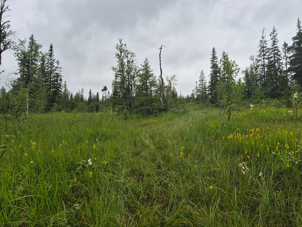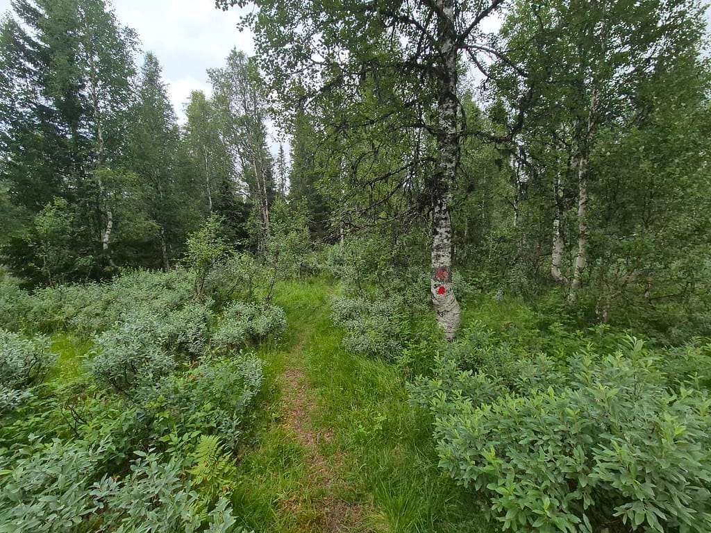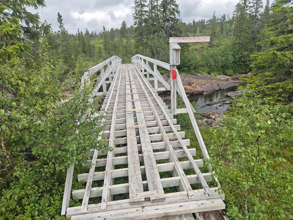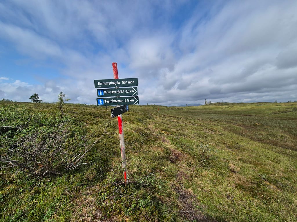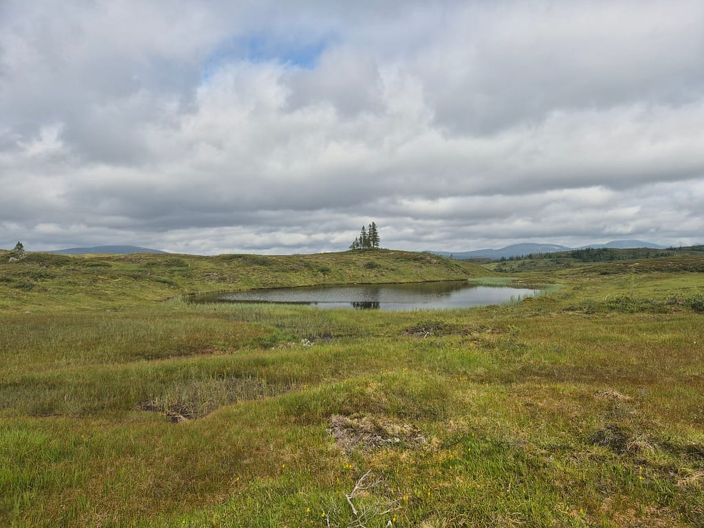 Det første timene var det litt vått i myra. Etterhvert kom det litt klopper over kortere områder. Det meste av turen var skog og myr til jeg nærmet meg DNT hytta Skjæketdalshytta. På toppen her var det litt snaufjell, men det var kun siste par kilometerne.
