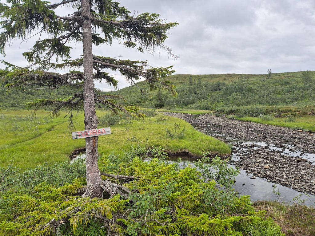 Vel fremme på hytta viste det seg at alt av bekker var tørre. Jeg måtte derfor bære vannbøttene et godt stykke før jeg fant rester av en bekk. Vannet sto helt stille men var ganske klart. Jeg kokte vannet til mat og vasket klær. Det er meldt mye regn fremover så jeg brukte muligheten til å vaske alr av klær da det kan bli en stund til neste mulighet.