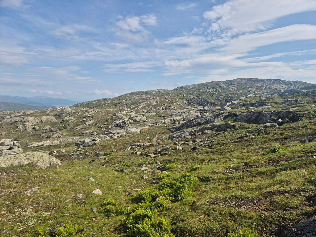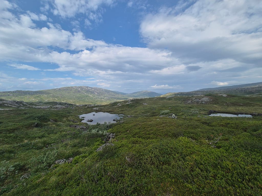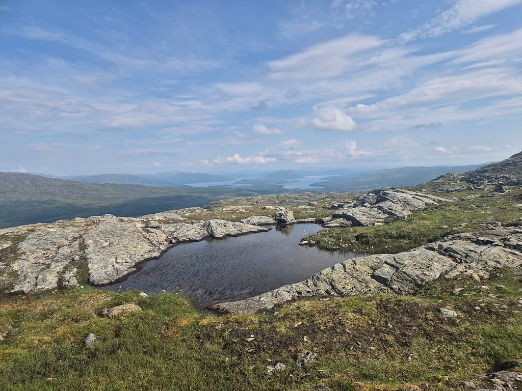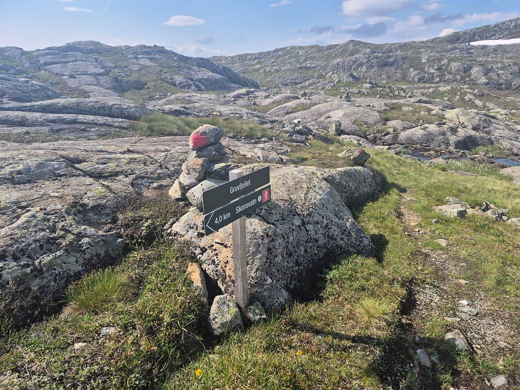 Etter en god natt i en tørr og varm hytte så satte jeg kursen mot Skorovatn. Det var en fin dag med godt vær. Nydelig tur fra hytta med god sti og din utsikt.