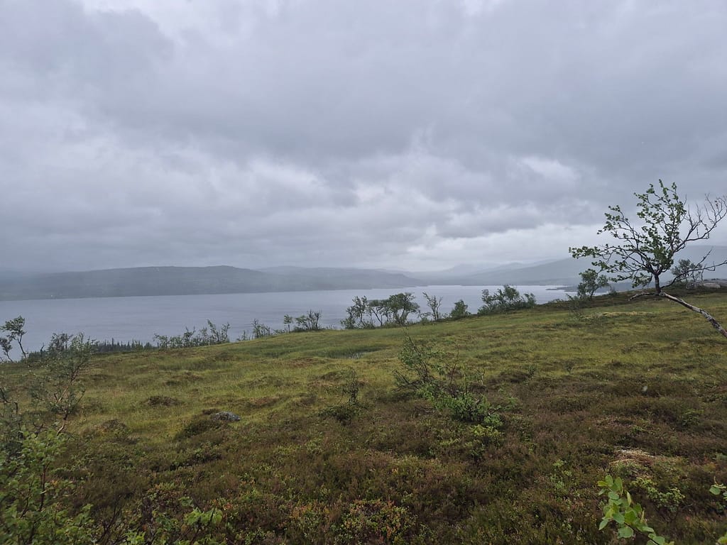 Det ble lite bilder denne dagen. Underveis i etappen gikk jeg tom for strøm på mobilen. Når jeg skulle lade så fikk jeg opp av det var fukt i ladeporten. Jeg fikk ikke løst dette før jeg hadde tatt kveld i teltet. Redningen ble pumpa som jeg bruker til liggeunderlaget. Denne ble brukt til å blåse ren usb porten.