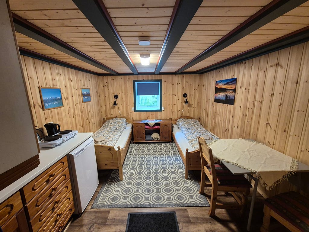 Jeg ankom Bergum i 18 tiden hvor jeg hadde booket overnatting. Jeg ble innlosjert i et trivelig rom i stallen. Bergum har en del utleieenheter og er et praktisk urgangspunkt for Nordlandsruta som starter i Susendalen. Det ble en dusj og jeg fikk laget meg litt middag. Det ble også pleiing av en del gnagsår i lysken. Flere dager med lange etapper i søkkvåte klær har gjort utslag. Etter tips fra svensken på Ranserbua så vil jeg gå til innkjøp av syntetiske boxere fremfor ull fremover. Dette fordi de tørker mye raskere og skal hjelpe mot friksjon.