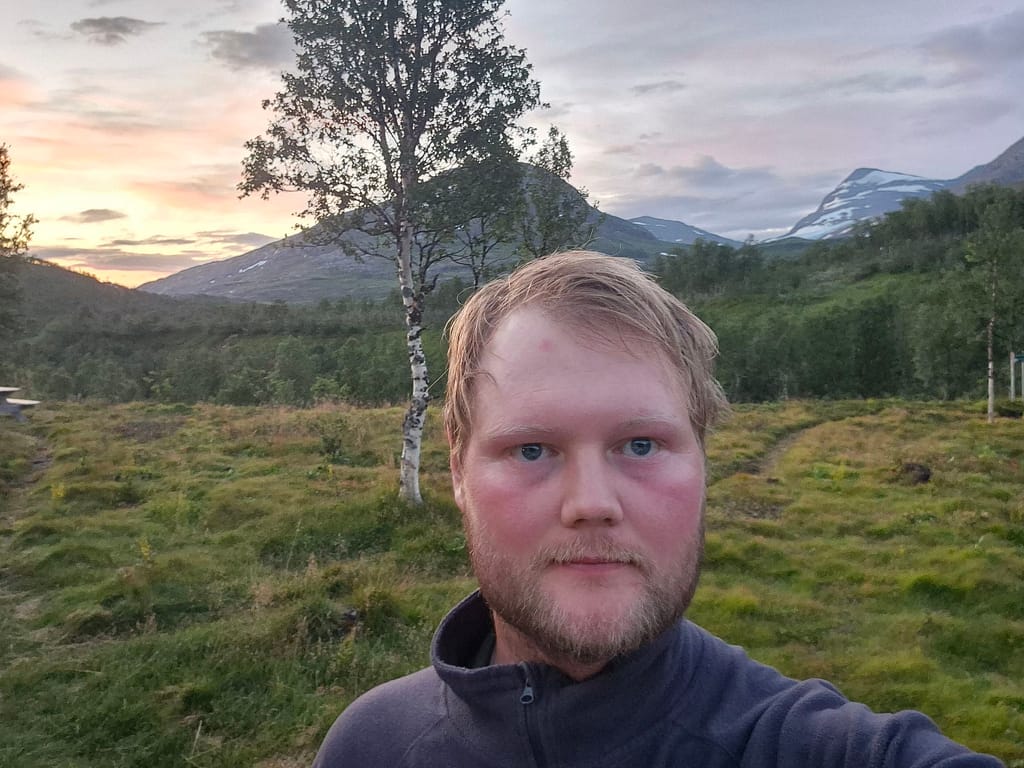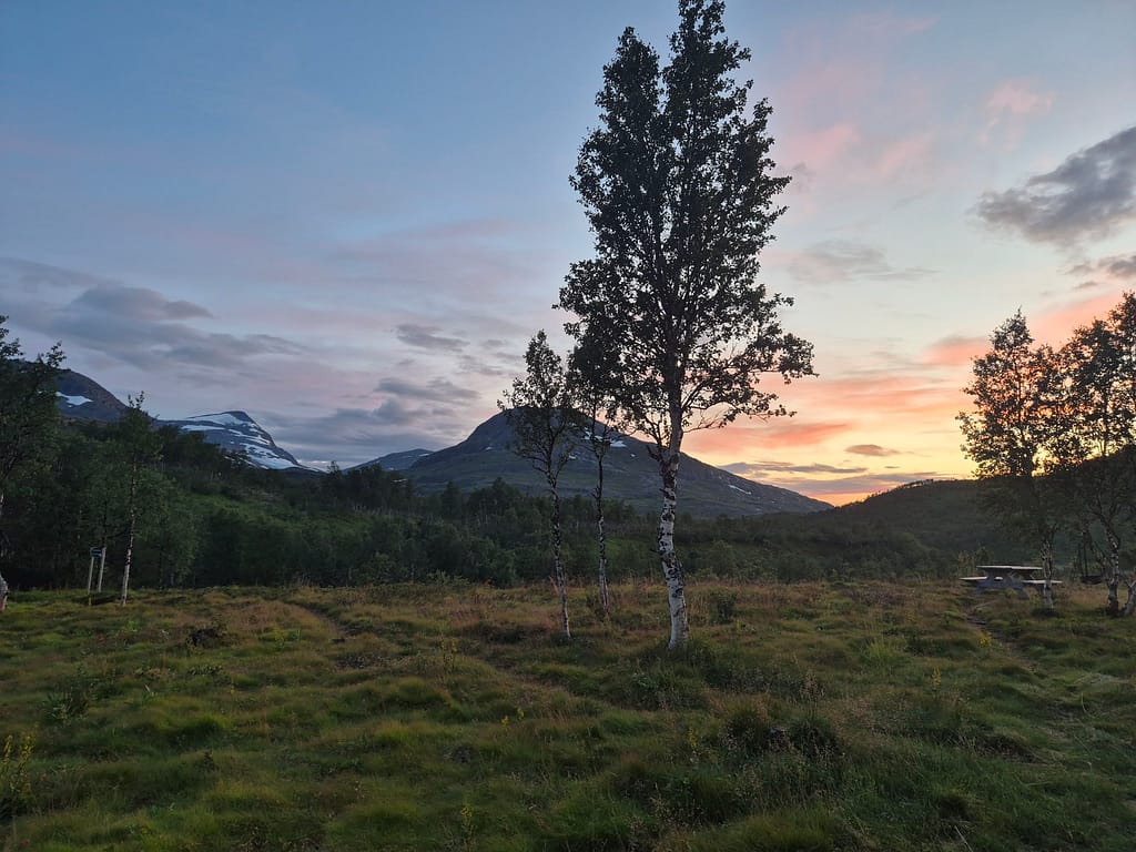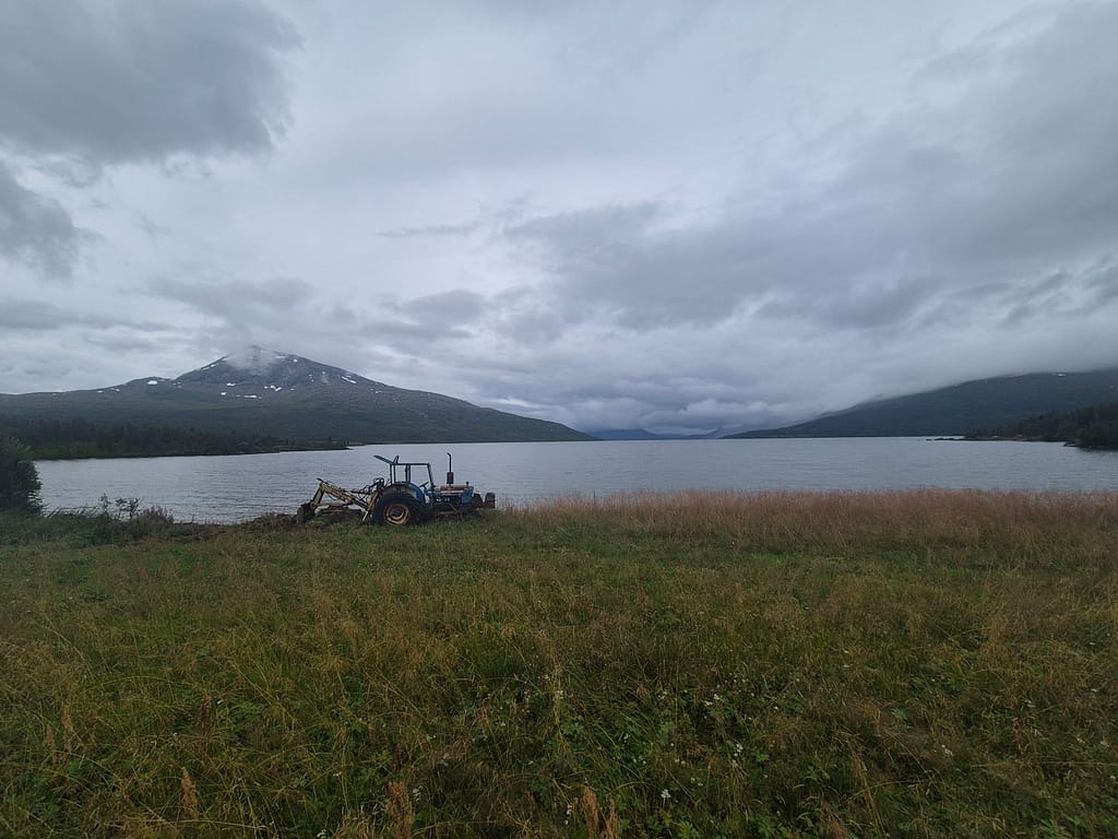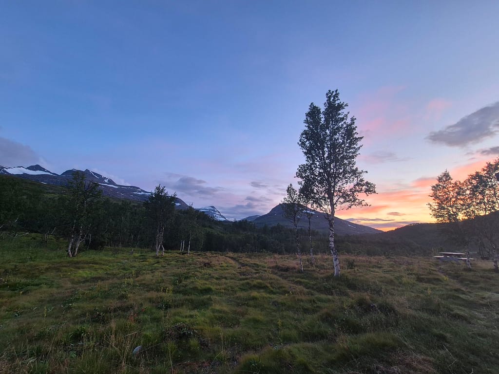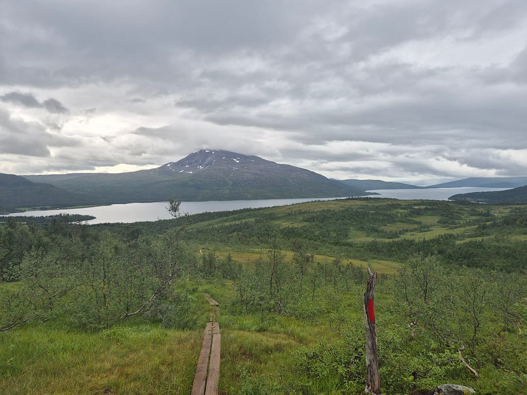 Dagen startet med nedoverbakker til Raudlia/Nordbukta. Jeg fikk telefondekning på den lille veistrekningen langs vannet før stien gikk oppover igjen mot Artfjellet innover Spjeltfjelldalen. Det var en grei stigning og fint terreng. Jeg satte pris på at ruta var lagt langs fjellsiden fremfor nede i dalen.