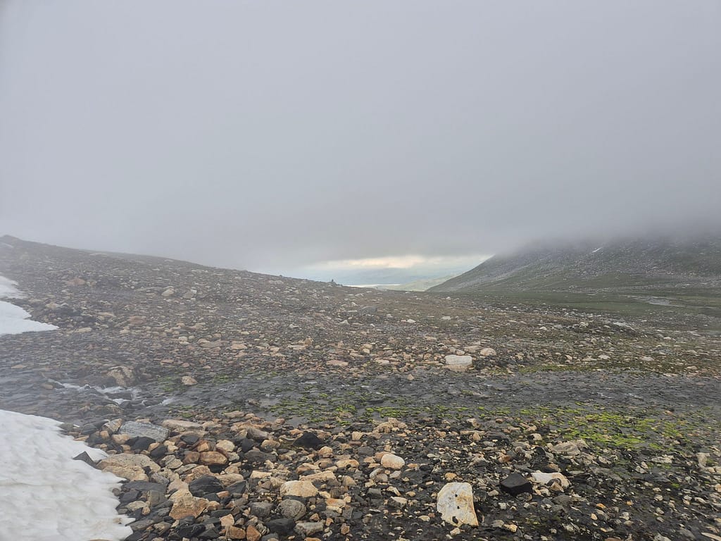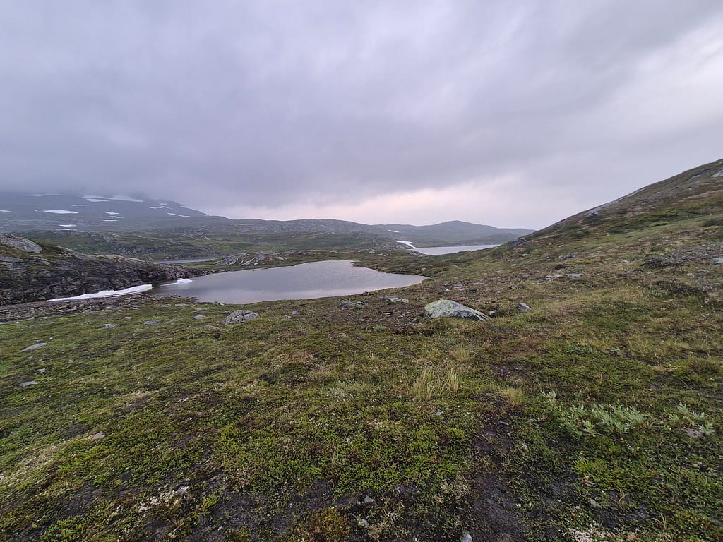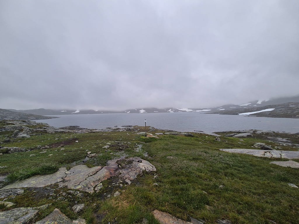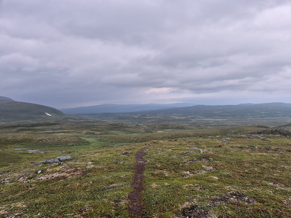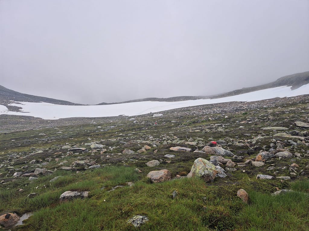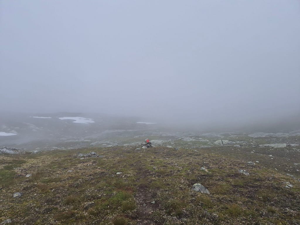 Etter en rolig dag på Sauvasshytta så var jeg klar til nye gode etapper. Det regnet en del og var vått, glatt og tåkete over Melkfjellet.