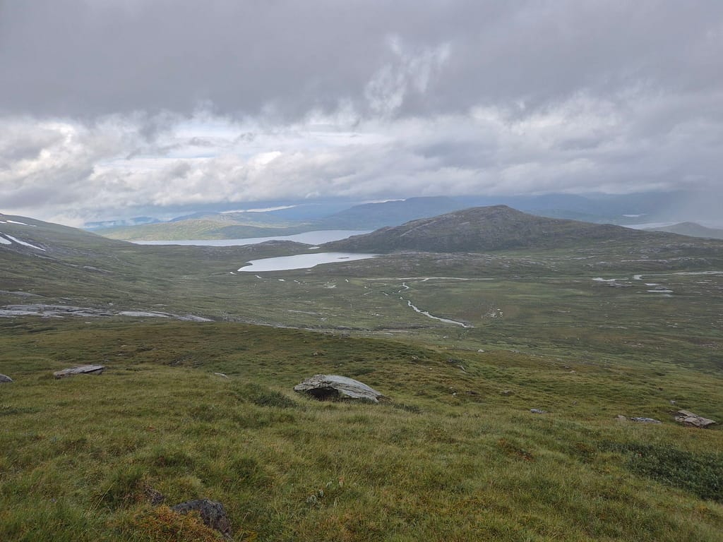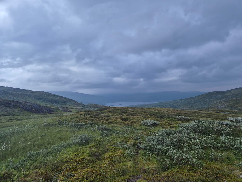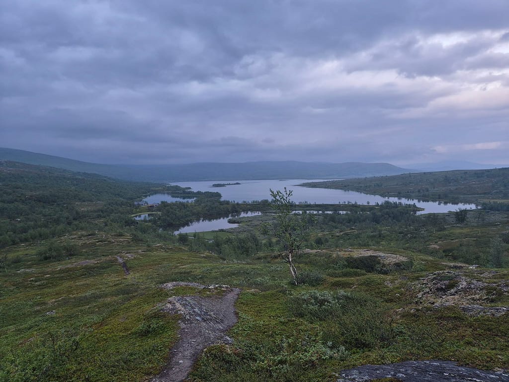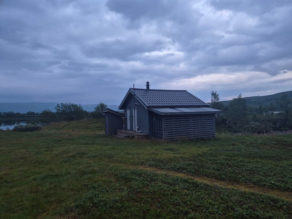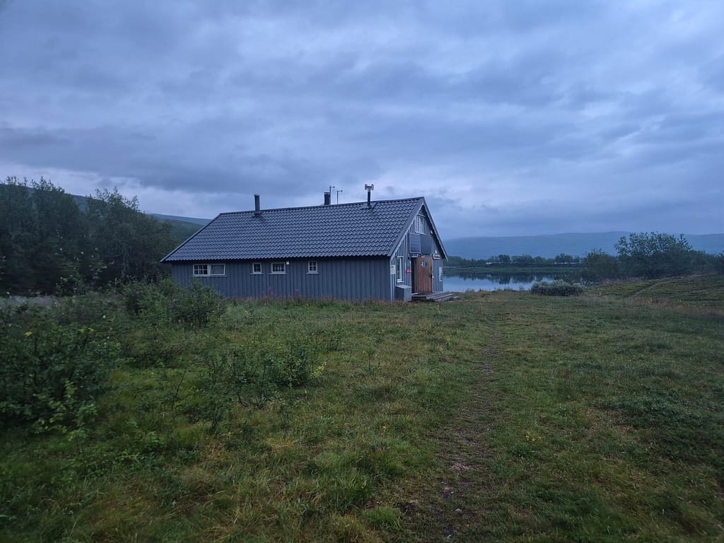 Dagens marsj ble på 39,8 km og jeg var fremme på Virvasshytta nærmere omkring 21:30. Når jeg kom inn i hytta var der mye utstyr, men alle hadde lagt seg. Jeg oppdaget at det på de fleste hyttene fra Virvasshytta og nordover ikke er batteri på hyttene. Det betyr at selvom det er solcellepanel så får man ikke ladet noe med mindre det er sol på det aktuelle tidspunktet. Jeg hadde ikke tatt dette med i beregningene så jeg vurderer en større powerbank fra Narvik.