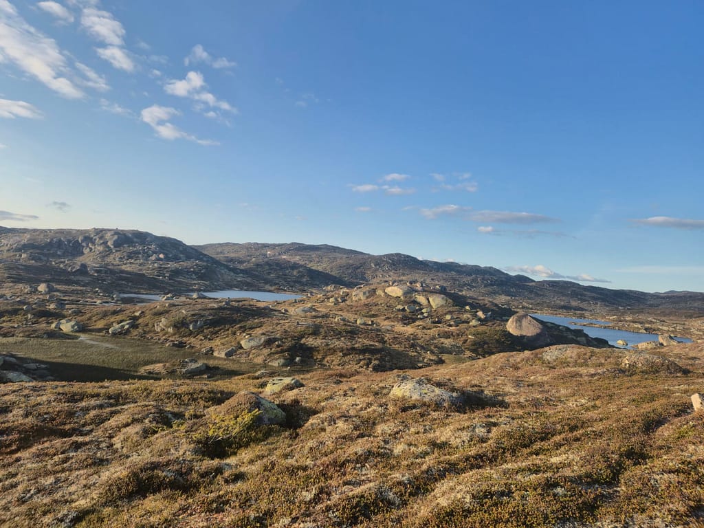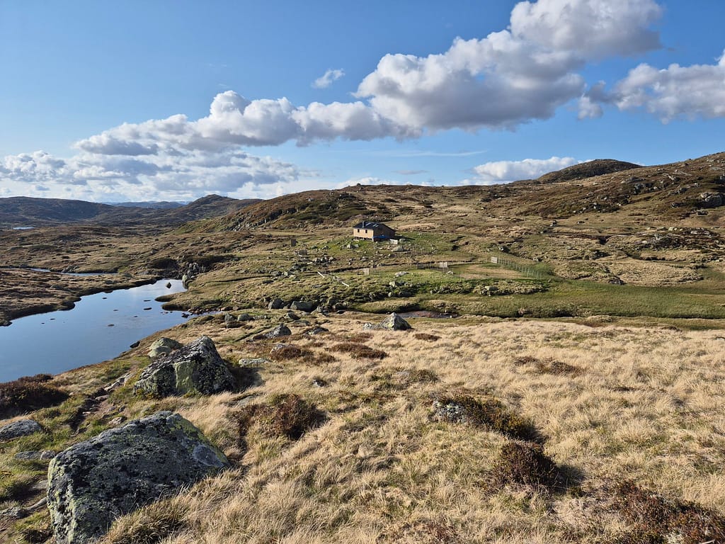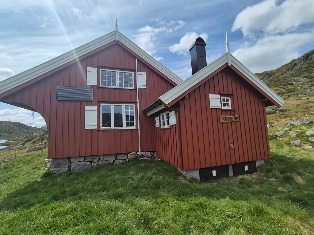 Det ble en rolig start i fint vær ned til turens første turistforeningshytte, Gaukhei. Her møtte jeg en kar som var på rundtur i området og en til person son går Norge på langs, Jon. Det ble en lang lunsj på hytta før jeg bestemte meg for å gå videre.