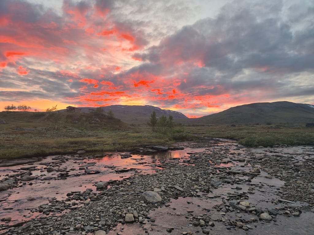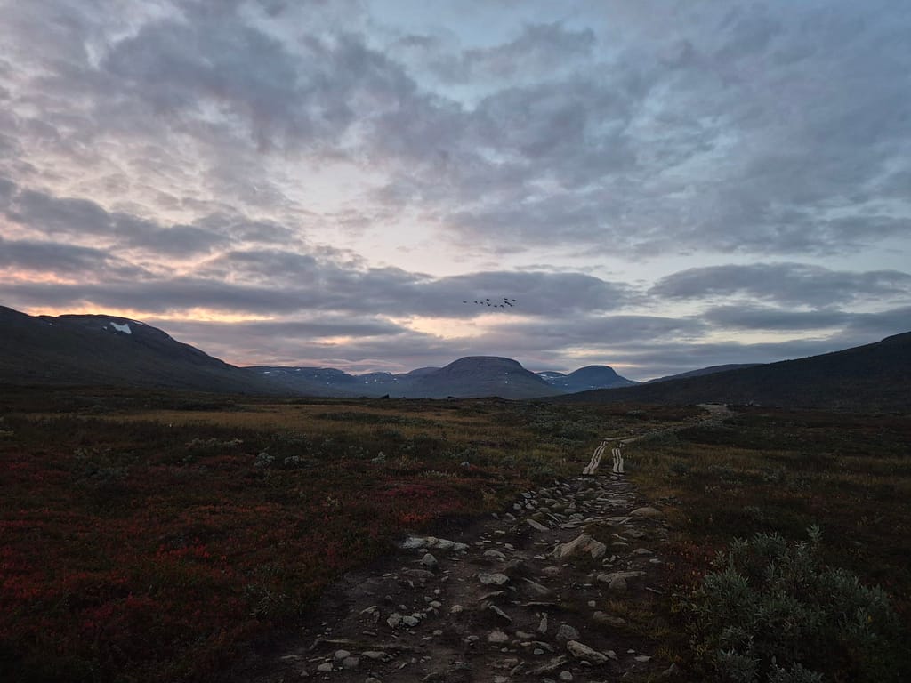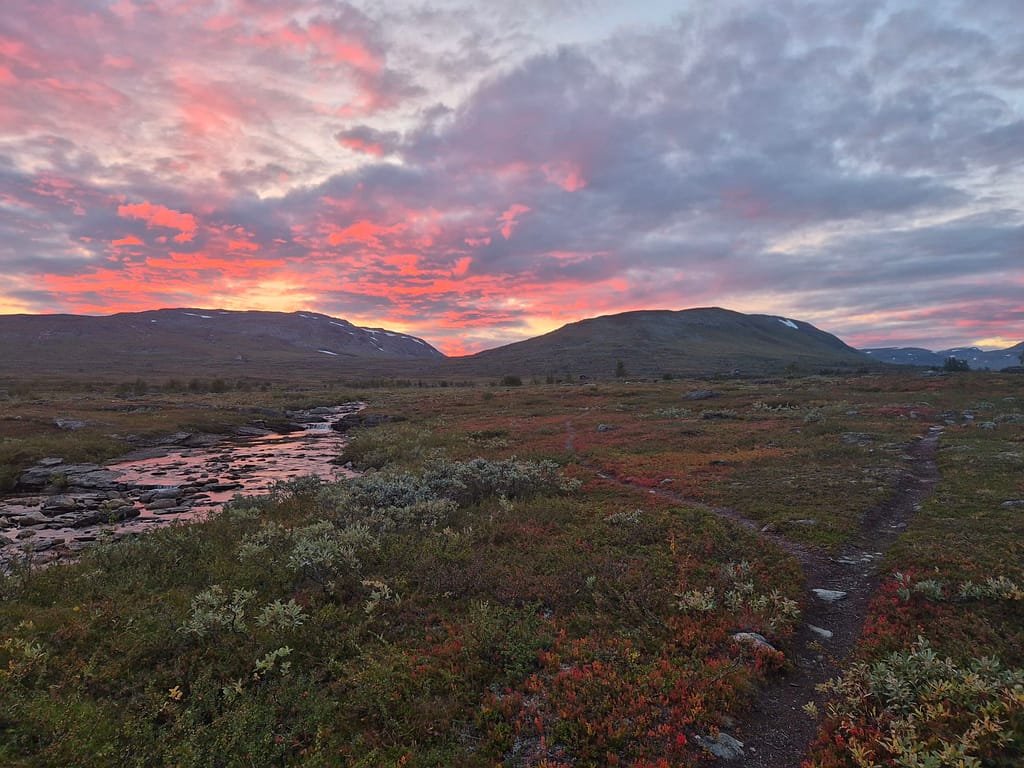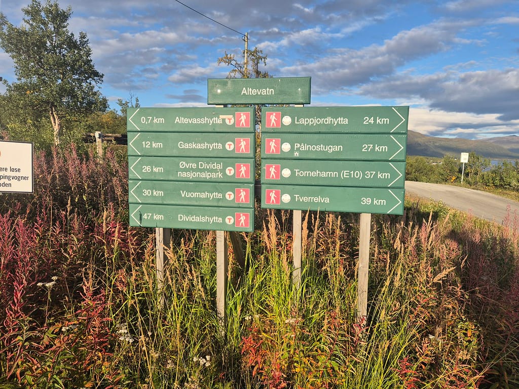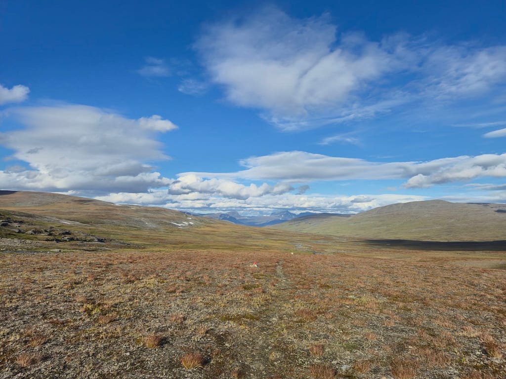 Flybilletten hjem er bestilt fra Honningsvåg 29. September. Jeg stresser litt med tiden, men fikk høre at sammenlignet med Marius og Bengt som gikk samme veien i 2024 så har jeg 4 dager mer å gå på for den siste biten. Dette hjalp på stressnivået og jeg er optimistisk for fremdriften. Det vil likevell bli gode etapper fremover, stort sett med dagsetapper på 30 km eller mer.